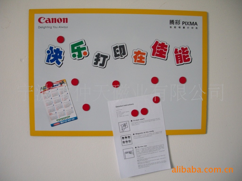 本产品采用磁性材料裱铜版纸彩色印刷腹膜制作而成,色彩丰富,使用寿命长,移动方便,自由组合,避免了粘贴胶质遗留痕迹的问题,可贴于冰箱贴等任何金属平面物体外表。