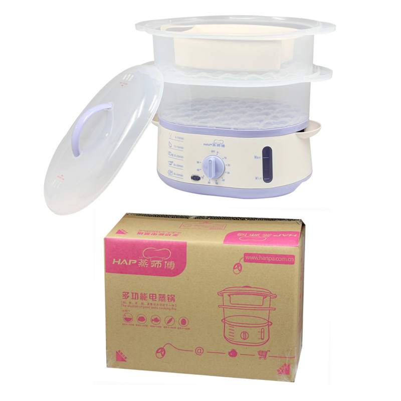 2、电蒸锅采用叠层食物蒸架设计,可同时做多道菜,节省空间和时间,还可用贮存食物。