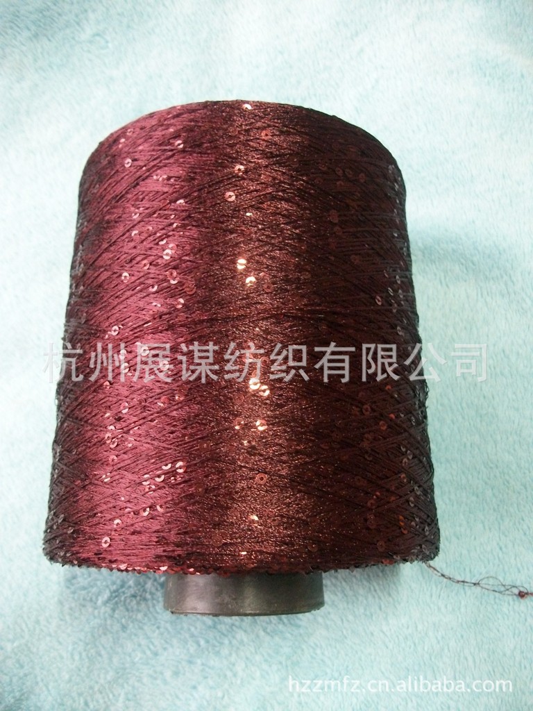 公司现有连线纱线机100余台,专业生产珠片纱,规格从108D-300D,亮片直径2MM-7MM都可以生产,线材料是环保型全涤纱线,亮片的材料:PVC环保材料.