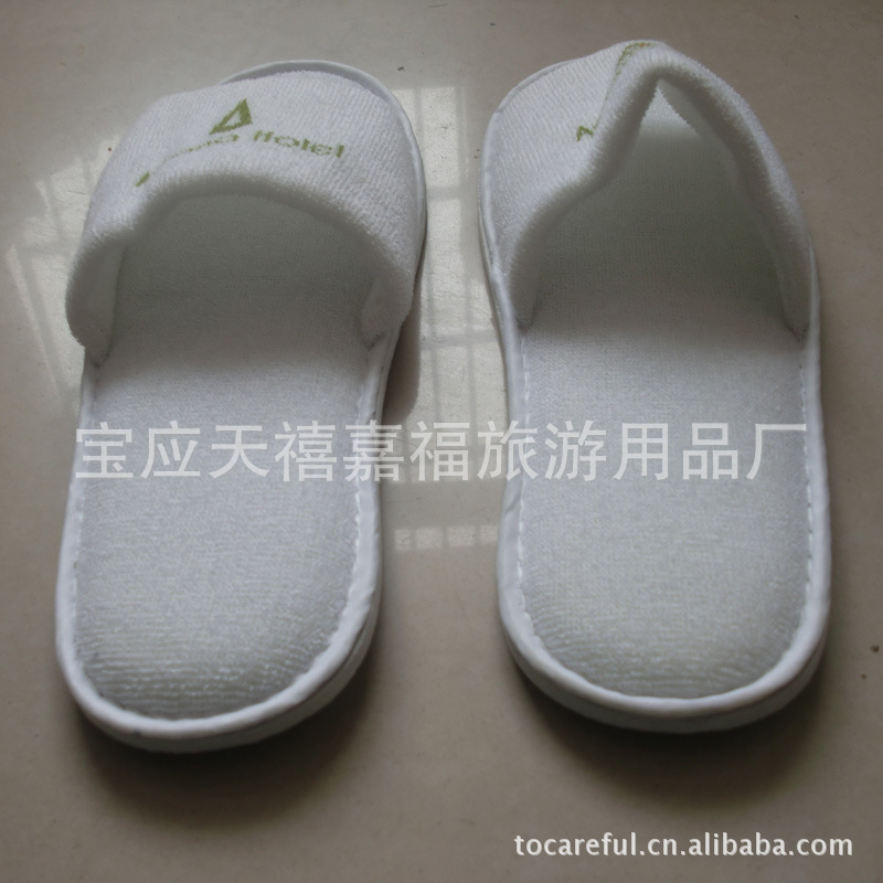 宾馆一次性拖鞋 品名: 酒店客房一次性拖鞋 用途: 国内外各大中小型酒店宾馆客户内使用 面料 :毛巾布/华夫格 组成部分 鞋帮:外帮和内帮;鞋底 风格: 包头/开口 工艺 :一把包/镶底 常规组成:外帮毛巾布/华夫格复合2-5mm海绵/内帮毛巾布复合2-5mm海绵 内帮可换成低克重的毛巾布或拉毛布复合海绵,或换成无纺丝以降低成本。 鞋底:2-6mmEVA+纸板+毛巾布/华夫格复合的海绵,有时候根据客人的需要可增加海绵小后跟 LOGO: 普通印刷,胶印和绣花 尺寸大小:根据客户要求。(常规的有:27X10.5cm, 28X11cm, 29X11cm. 30X12cm.) |