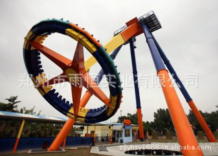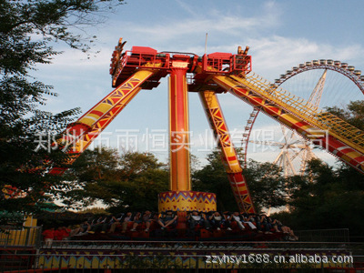 海盗船是一种全新设计的观览车类游艺机,是一种绕水平轴往复摆动的游乐项目,该种游艺机因造型图同而名称各异,“海盗船”因为其外形仿古代海盗船而得名。海盗船造型为美洲印第安部落风格,总高度15米,最高运行速度32km/h,最大摆角60度,海盗船启动后从缓慢摆动慢慢的急速摆动,乘客乘坐于海盗船之上,随着由缓至急的往复摆动,犹如莅临惊涛骇浪的大海之中,时而冲上浪峰,时而跌入谷底,惊险刺激,挑战你的心理承受能力的极限。