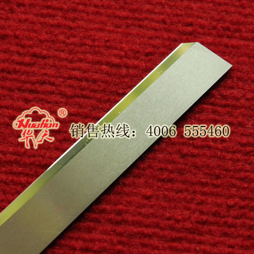 目前,大型化纤企业应用最广泛的切断刀是YS2超细晶粒硬质合金切断刀。这种硬质合金的WC粒度一般小于1um,大部分在0.5um以下,是一种高硬度、高强度兼备的刀具材料,常用于耐热合金、热喷涂材料的加工和制造精密刀具。由于晶粒细小,用金刚石砂轮仔细磨削后,刀具刃口半径可达3um,可以磨出非常锋利的刃口,使用效果很好。切割1.50*10dtex涤纶半消光纤维,刃磨一次平均使用时间可达72h,而且可以重磨4-5次。但该切断刀的材料成本很高,加工难度大,因而刀片价格昂贵,且有断刀现象发生。