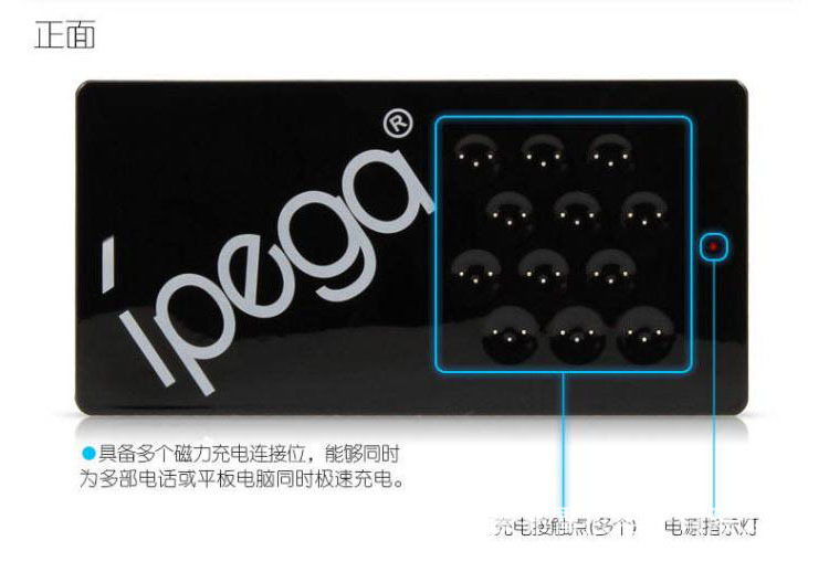 2、具备多个磁力充电连接位,能够同时为4部手机或平板电脑同时极速充电。