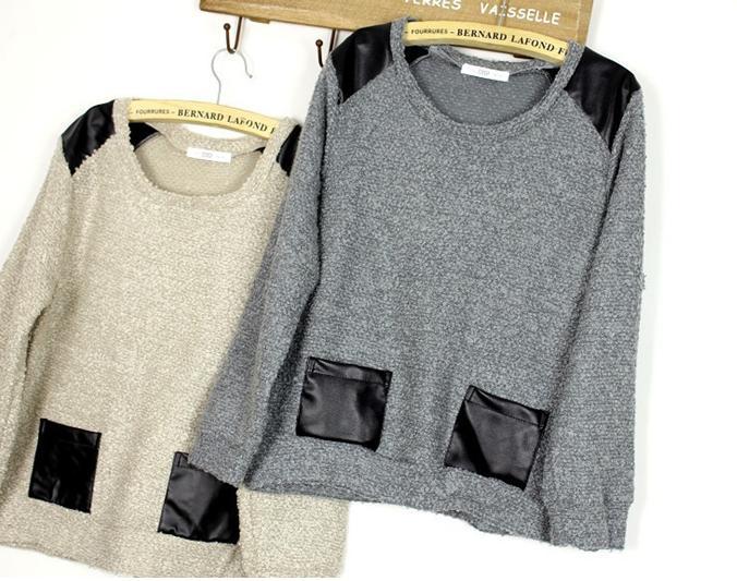 日韩女装秋冬装日系PU 毛青长袖女式毛衣