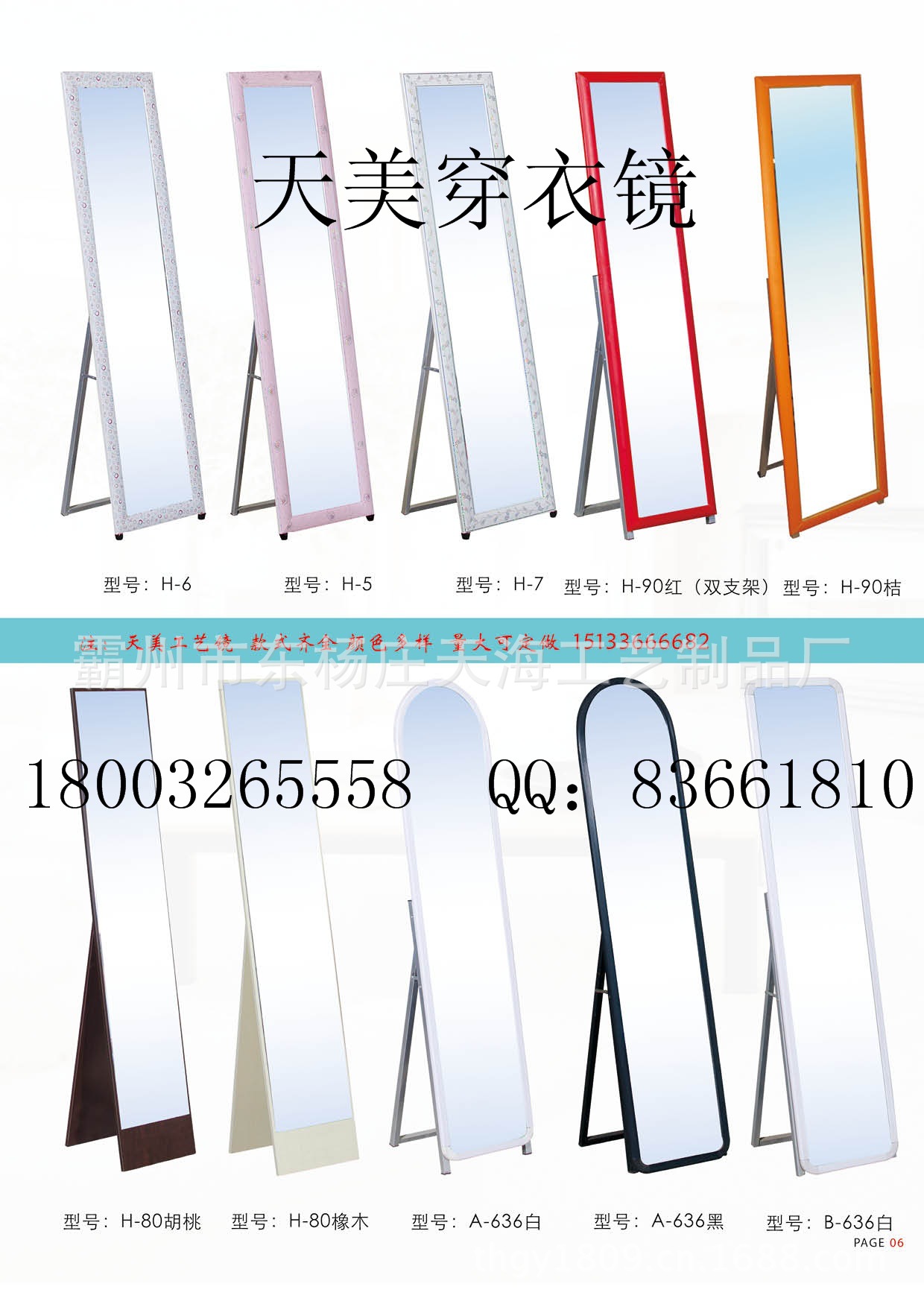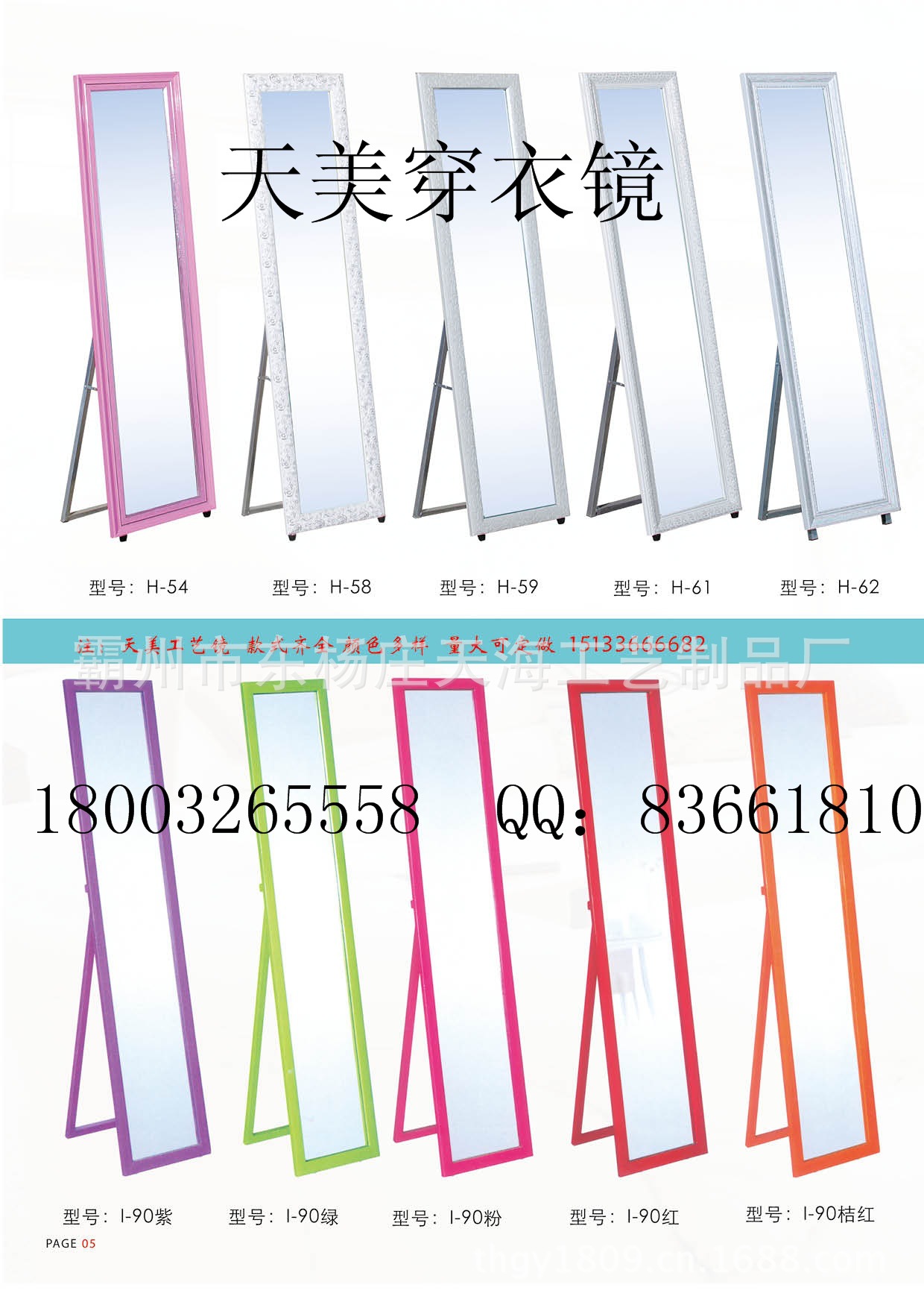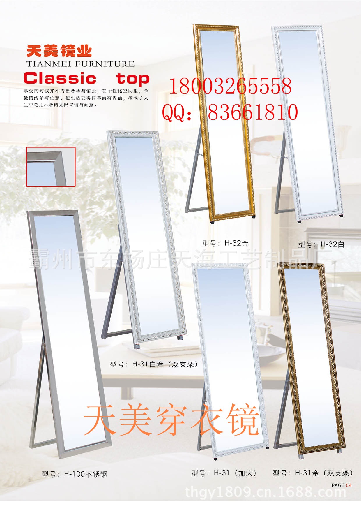 天海工艺制品厂专业生产各种穿衣镜,全身镜,试衣镜与配件。为方便广大客户需求,推出全身镜折叠支架与折叠拉条产品供应全国广大客户,是客户免去运输镜片易碎的局面,所使用框条全部是相框条材料,各地均有供应。是客户免去高价购买成品的局限。