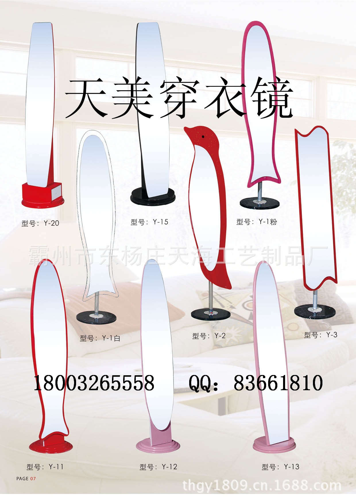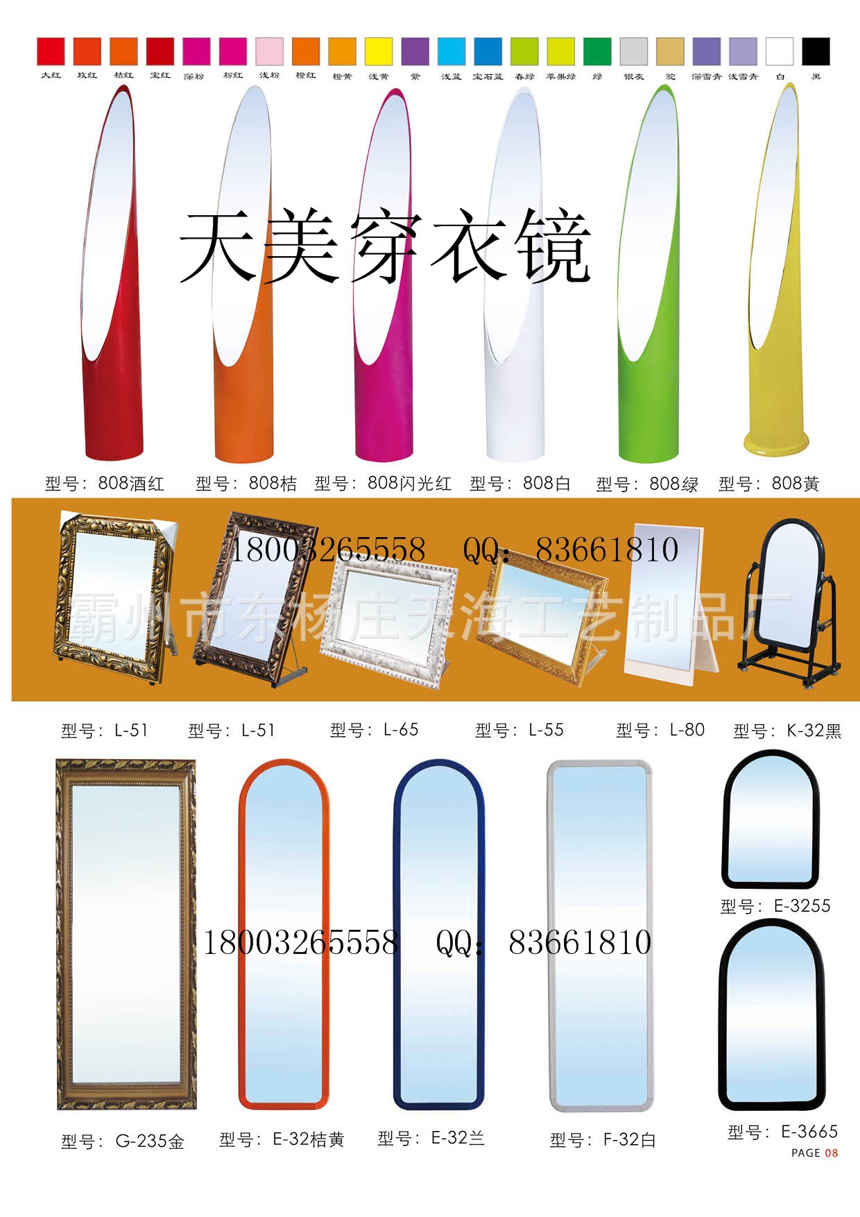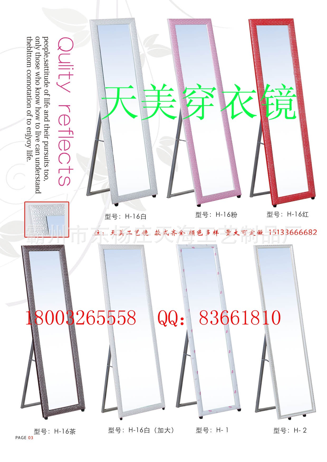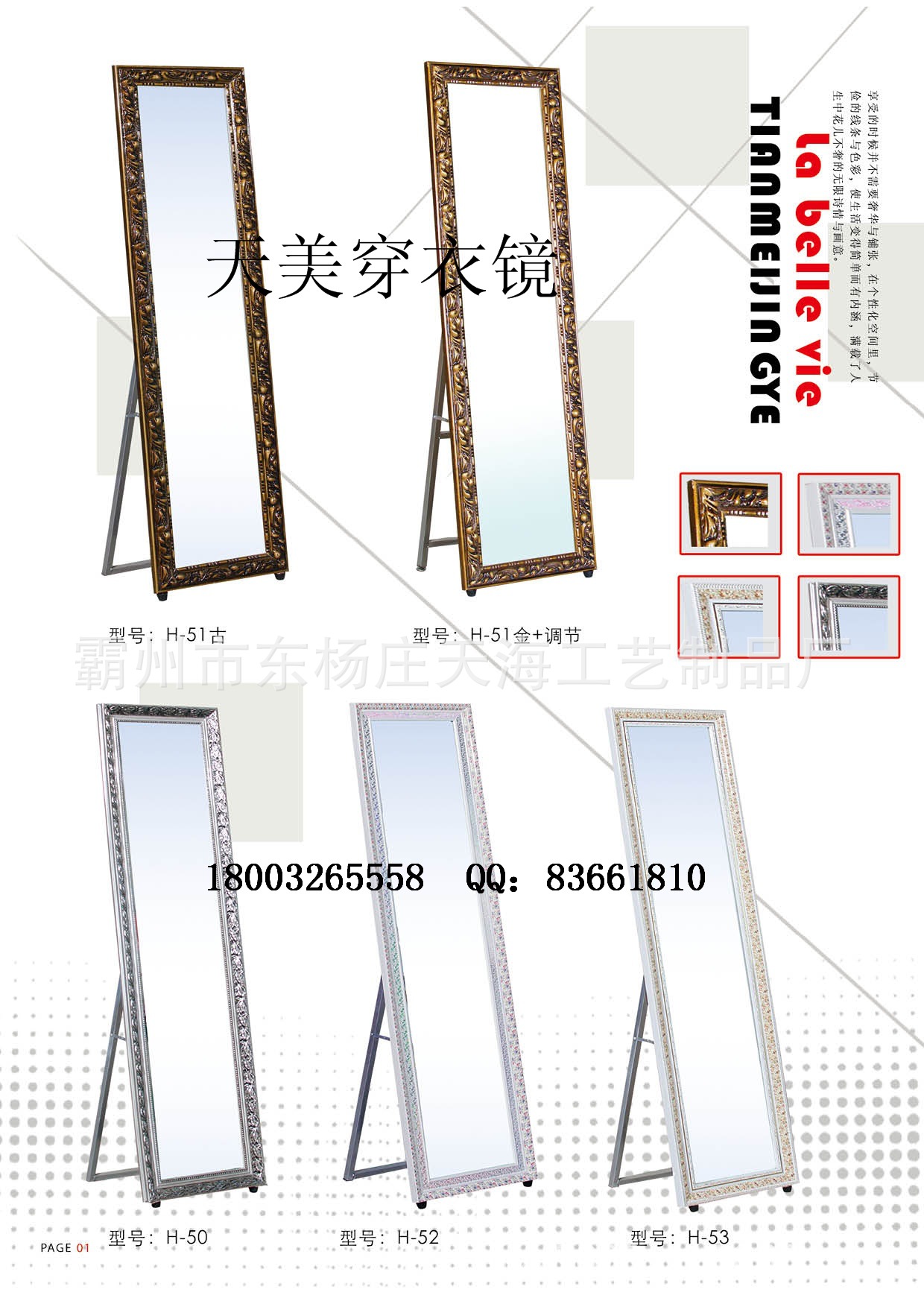 天海工艺制品厂专业生产各种穿衣镜,全身镜,试衣镜与配件。为方便广大客户需求,推出全身镜折叠支架与折叠拉条产品供应全国广大客户,是客户免去运输镜片易碎的局面,所使用框条全部是相框条材料,各地均有供应。是客户免去高价购买成品的局限。