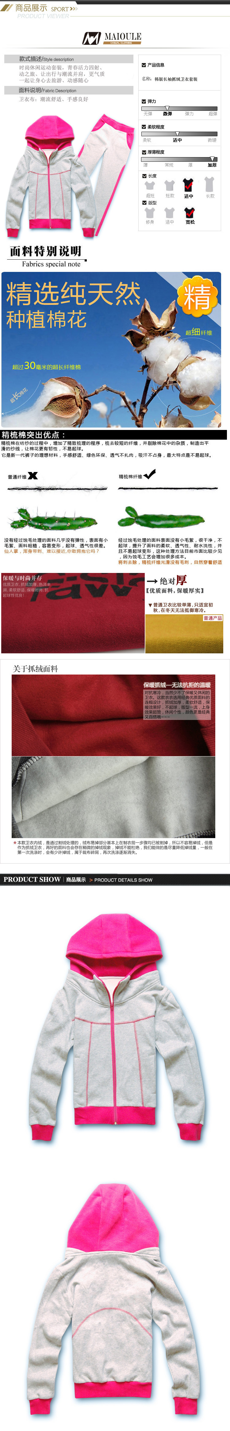 女卫衣外套 加绒加厚女连帽卫衣 韩版纯棉长袖运动服套装 批发