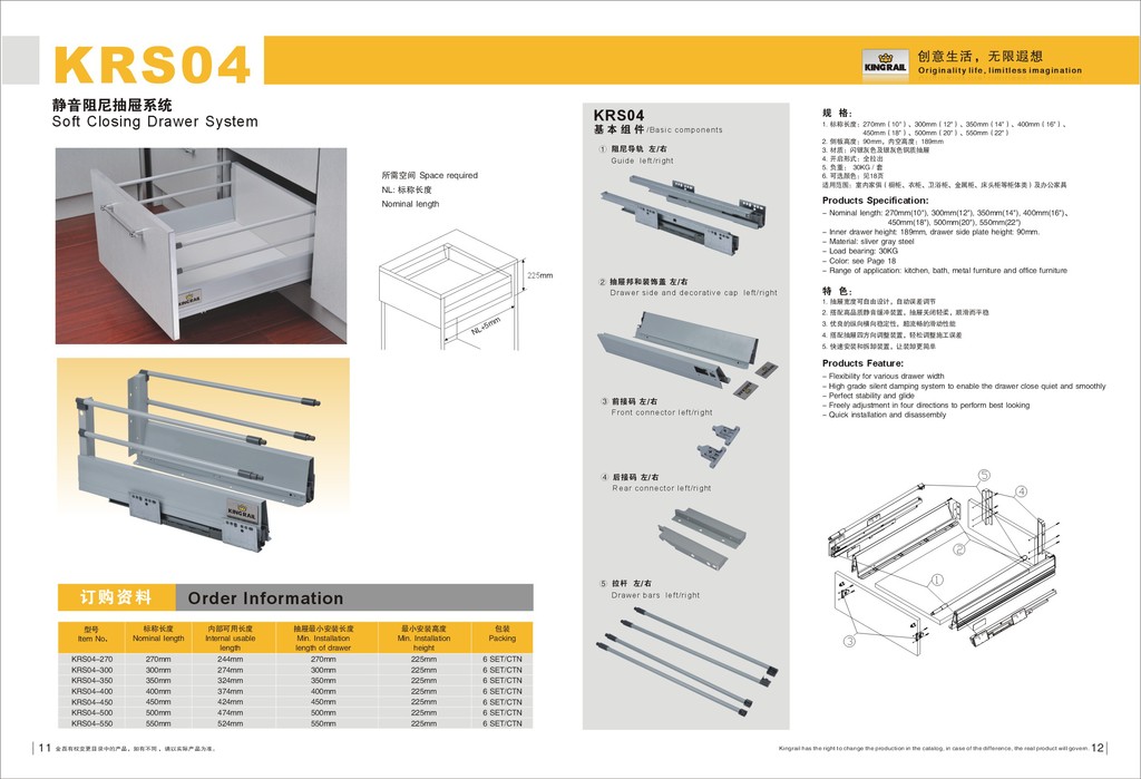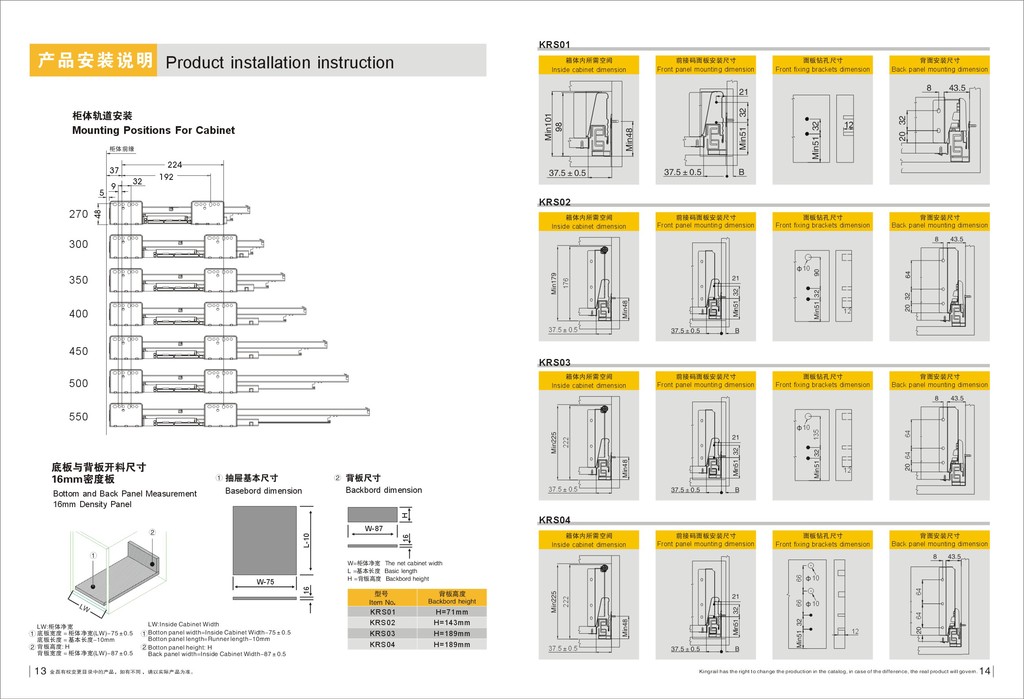 2.侧板高度:90mm,内空高度:71mm、(KRS02)143mm、(KRS04/KRS04)189mm