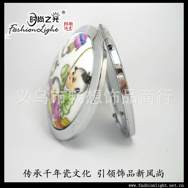 [小额批发]景德镇陶瓷饰品 婴戏图 化妆镜 便携折叠镜(7CM)
