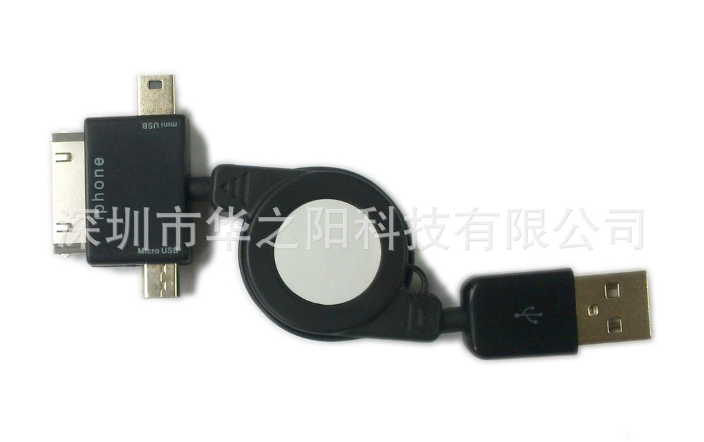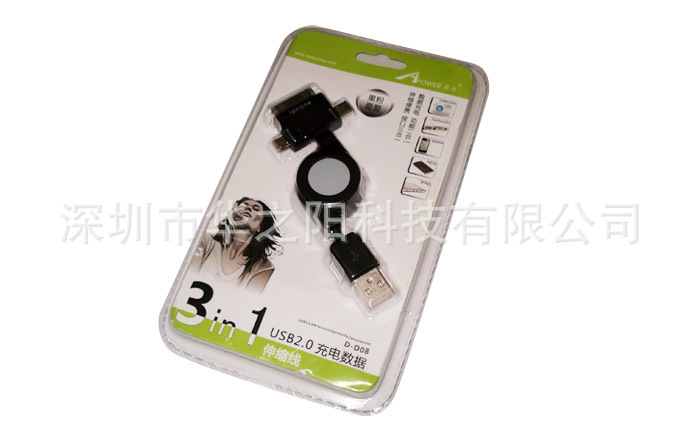 三合一伸缩数据线=Micro USB接口+Mini USB接口+iphone接口=几乎囊括了所有手机的充电以及数据传输!