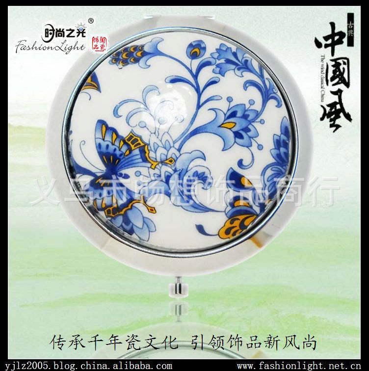 [小额批发]景德镇陶瓷饰品 青花瓷镜子 陶瓷折叠化妆镜02