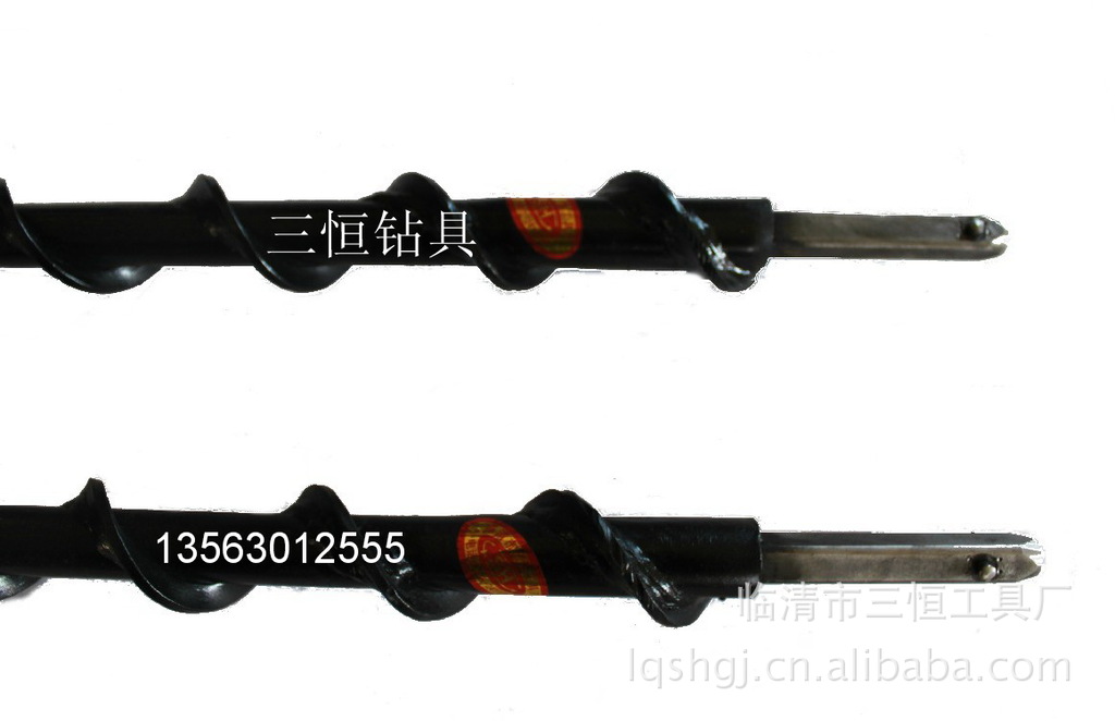 肋骨钻杆在施工过程中旋转阻力小,排渣效果好,可使用于各种类型地质,并能够采用拆卸装置进行快速拆卸,提高了施工效率,节省了人工及材料成本。由于螺旋叶片较宽,且具有较高的硬度,因此该肋骨钻杆具有良好的排渣效果,并且适用于各种硬度及各种类型的地质。另外,由于较宽的螺旋叶片,使得该肋骨钻杆在钻孔施工过程中不会切削钻孔的孔壁,不会造成孔壁的偏斜而影响钻孔的效果。本系列产品分为锥度连接型和六方快速插接型。