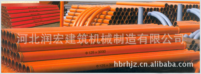 河北润宏建筑机械有限公司是生产混凝土输送泵、车泵配件的专业厂家。主要产品有:HBT拖式泵车输送管、各种地面管、水平管、橡胶软管、以及各种直管、弯管、变径管、法兰、弯头、管卡、钢卡、橡胶圈、清洗球、清洗柱、清洗活塞、手动式12米、15米布料机。并且可按照图纸为用户精密制作。楚天85B、90B、三一、中联、大象、三星、海诺等车泵。砂浆泵配件:砂浆泵泵管、砂浆泵管卡、砂浆泵弯管、胶圈、砂浆泵法兰、砂浆泵胶管。联系人:张文芳手机15830475682 18932761793网址:www.hbrhtb.com