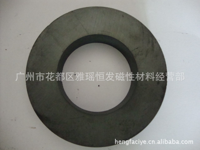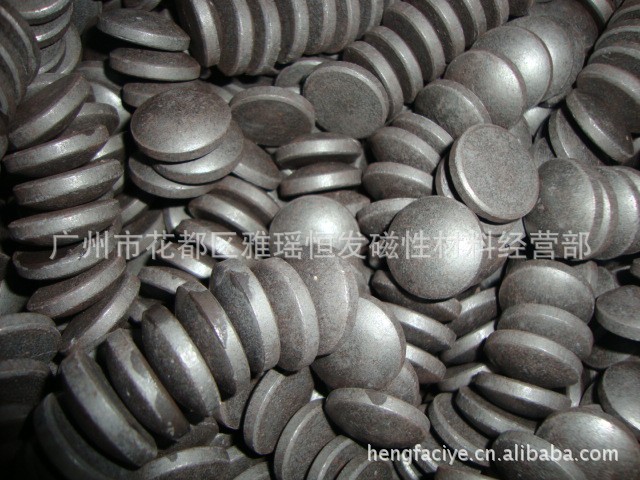 永磁铁氧体又叫铁氧体磁钢,一种具有单轴各向异性的六角结构的化合物,就是我们平时见到的黑色小磁铁。其组成原材料主要有氧化铁、碳酸钡或碳酸锶。有同性磁和异性磁之分。由于这类铁氧体材料在外界磁化场消失以后,仍能长久地保留着较强的恒定剩磁性质,可以用于对外部空间产生恒稳的磁场。其应用很广泛,例如:在各类电表中、发电机、电话机、扬声器、电视机和微波器件中作为恒磁体使用。