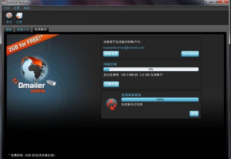 备份及还原按钮指向为本地和网络存储。文件菜单打开其他备份可添加或删除备份用户,设置菜单可对本地或 网络备份进行详细设置 |
