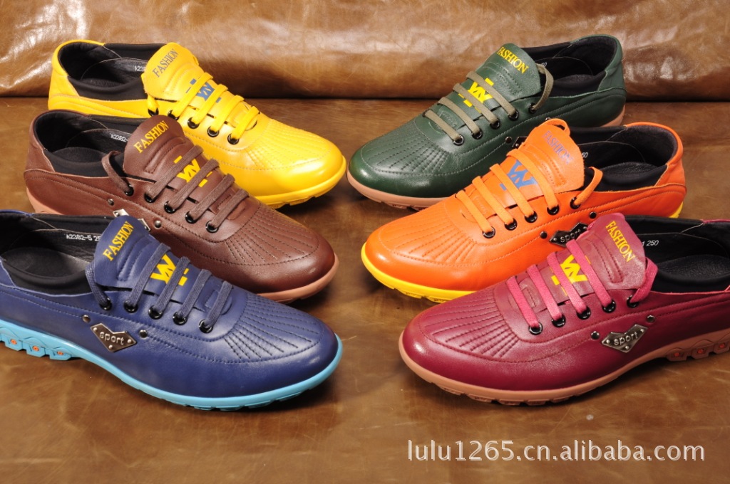 2013年春板新款休闲韩版时尚鞋 糖果色头层牛皮舒适男鞋