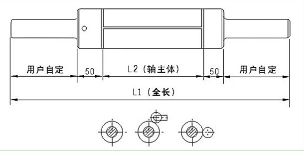 2、气胀轴有效部分按本公司的标准制作,其它尺寸根据用户要求,加工来图要标明进气方式,若径向进气要留出45mm长度的气嘴安装位置:若轴向进气,则气嘴安装位置的轴头外径必须大于φ35mm。