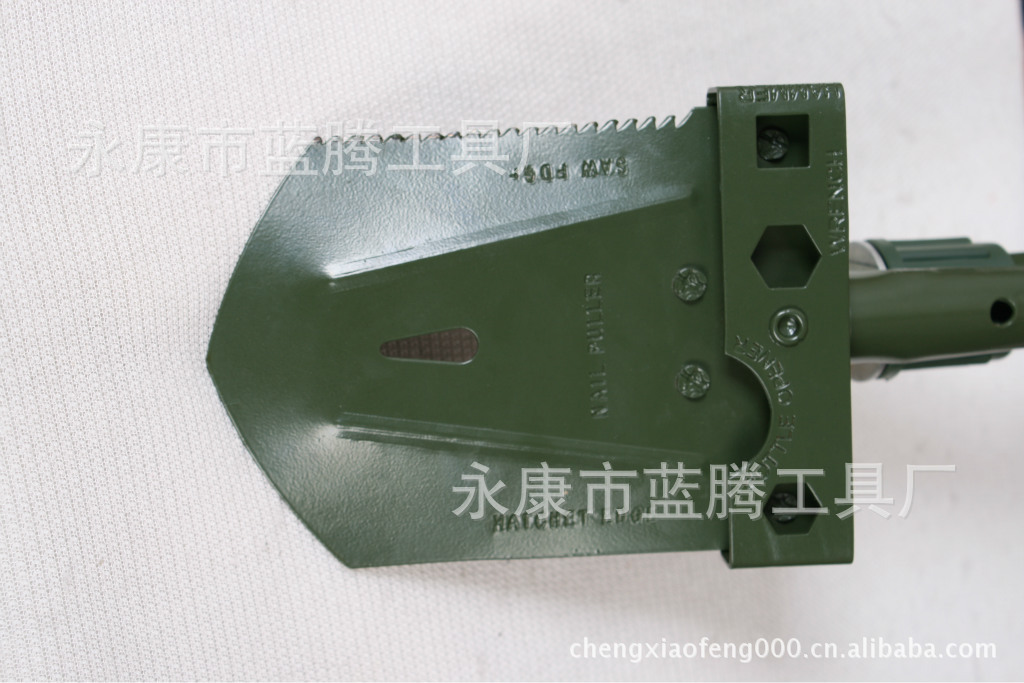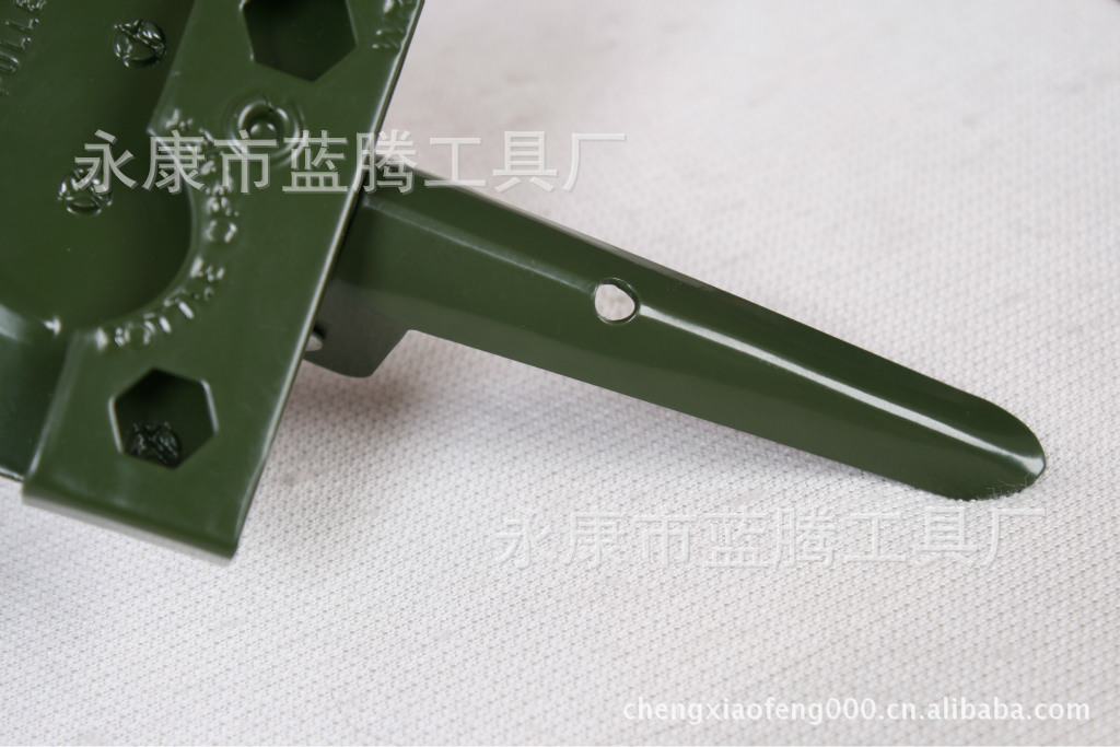 折叠铲表面处理均采用无毒绿色环保类表面静电喷塑工艺有亮黑、亚光黑、绿色、沙漠黄、迷彩银花等可满足不同客户的要求。