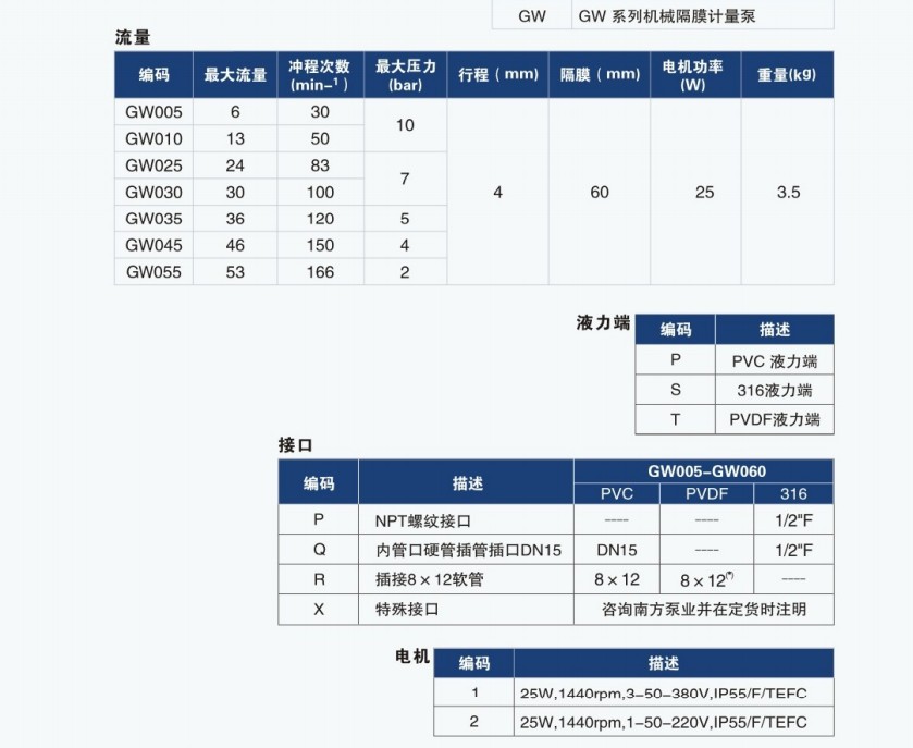 杭州南方泵业股份有限公司 GW系列机械隔膜计量泵