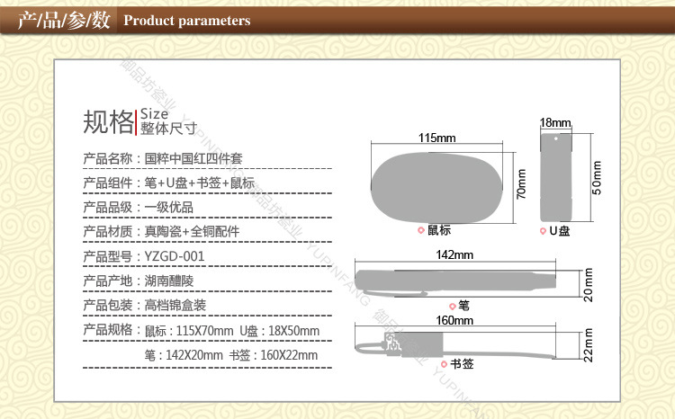醴陵御品坊瓷业有限公司是家专业生产中国风国粹礼品瓷的制造厂商,提供红瓷U盘、釉下彩U盘、青花瓷U盘、红瓷真瓷笔、釉下彩瓷笔、青花真瓷笔等的定制,质量过硬,服务周到。御品坊坚持不懈,在这充斥良莠不齐产品的市场上,凭借合理的价格及高质量、高标准、交货快捷的优良服务,在行业中已取得良好的口碑。御品坊努力谋求企业与客户的共同发展。热忱欢迎国内外各界新老客户朋友前来实地参观、考察、洽谈业务。真诚希望与全国各行各业携手成为紧密合作伙伴。