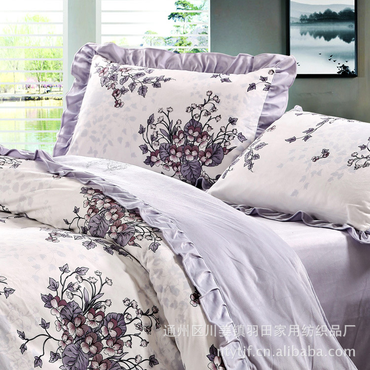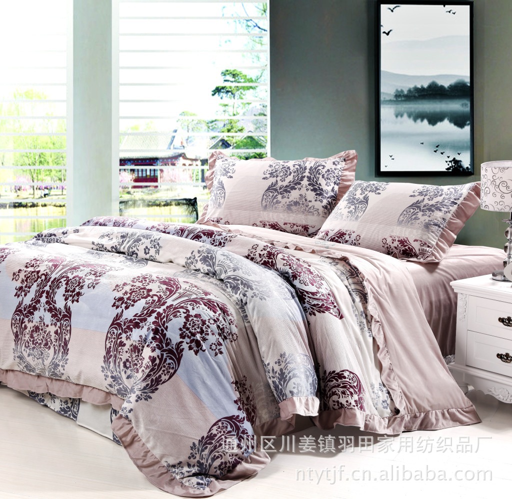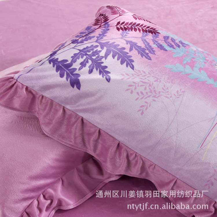 商品简介 | 商品特色: 1.天鹅绒保暖四件套采用、高织高密超细旦纤维印花面料, 色泽亮丽、手感柔软、细腻,吸湿透气、不易起球、花样独特,色彩时尚典雅。 2、整个床品外观色泽虚实相间,层次分明,精美的图案给人雍容与高贵之感.同时环保印染在印染过程中不添加任何偶氮和甲醛, 印染色料也是用国际标准环保材料经过高温处理工艺印染而成,不易褪色,对人体皮肤无害。不含对人体任何有害的物质,且洗涤时不易褪色不缩水, 防尘性能优良色牢度高。 3、AB版的设计被套可正反使用,也使整个床品更加的实用,用一套床品的价格带回二种截然不同的床品,使卧室充满了温馨和浪漫。 4、采用窄幅印花面料精心制作而成,在每一道缝合处都运用了密实的锁边处理,巧妙灵活。每一道的缝制线始末端处都采用打倒回针处理, 避免在日用及反复洗涤过程中针线脱落、裂缝等弊端。 5、枕套采用压边式设计,休闲时尚。 |