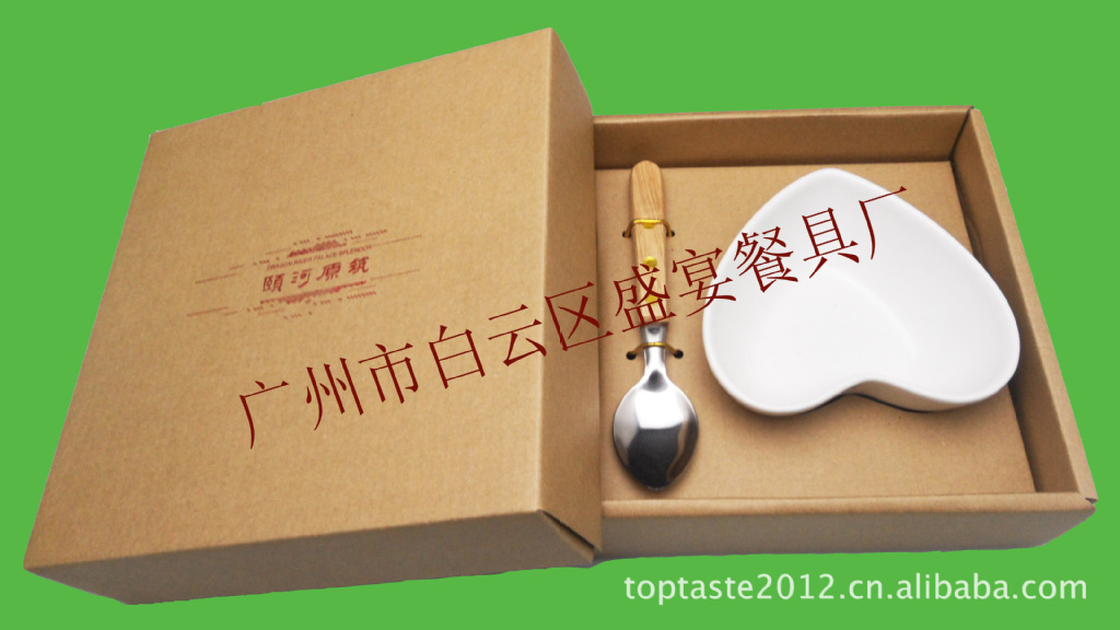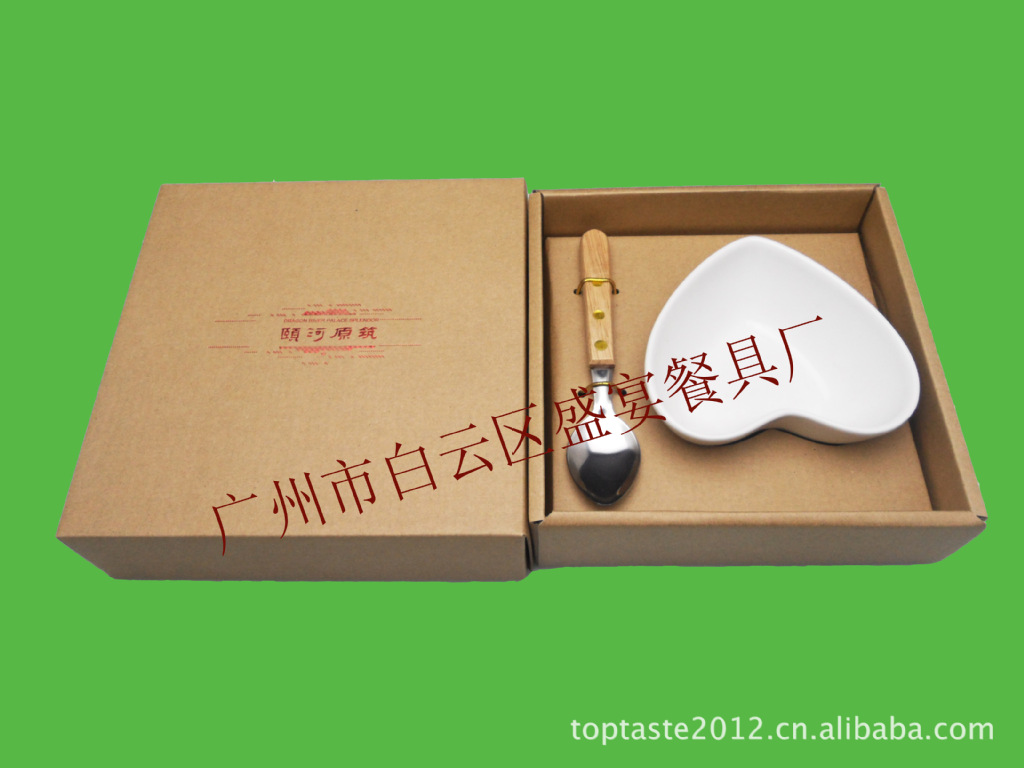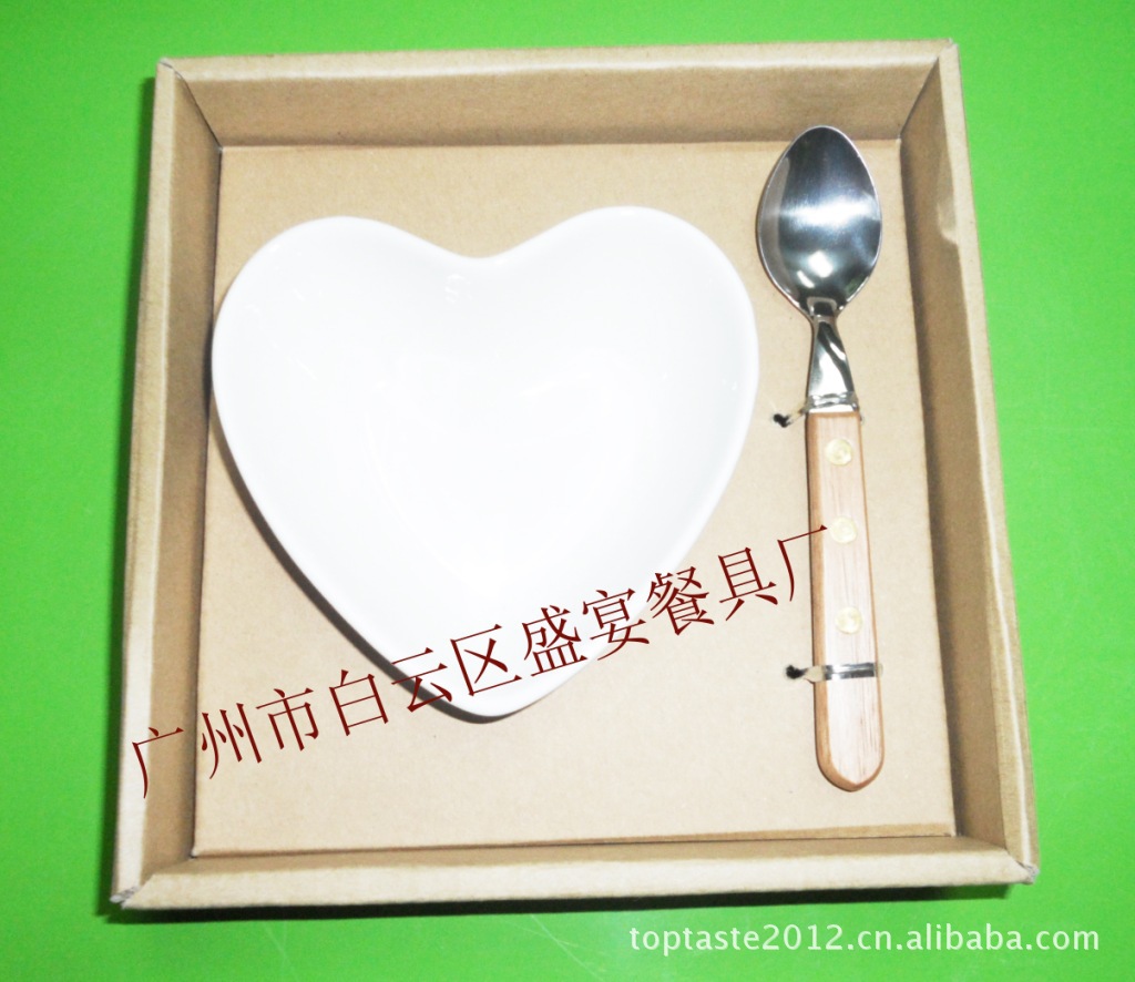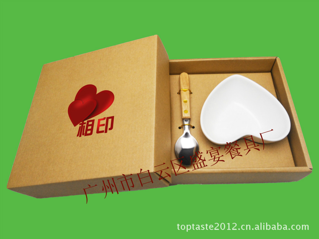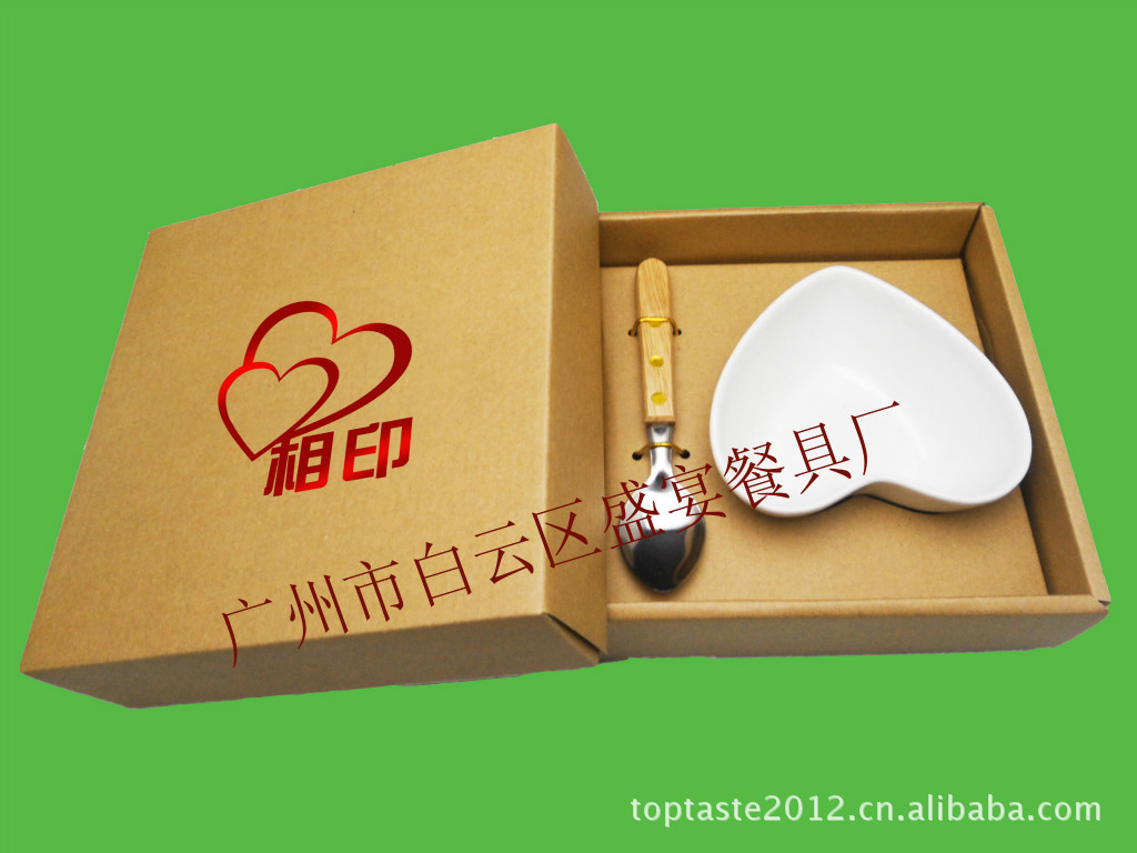 产品规格:1个心形碗配搭1个木柄勺 彩盒包装 价格未含烫金