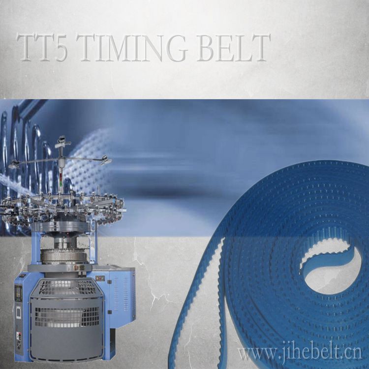 TT5聚氨酯同步带广泛应用于大圆针织机上,用于8600、9600等一系列大圆针织机储存式送纱器的传输,分别有聚氨酯环形钢芯无接口、聚氨酯钢芯接口、聚氨酯纤维芯接口三个系列。可根据实际使用长度需要剪裁后接驳。