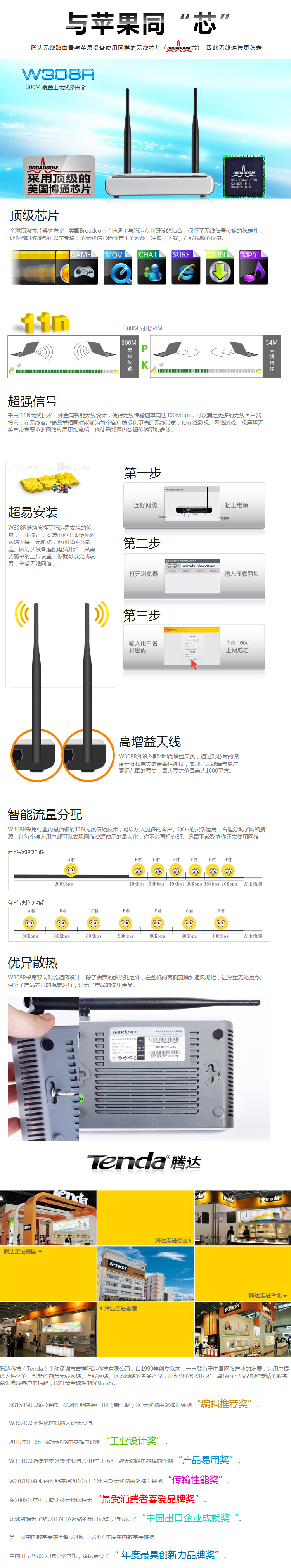 包邮 腾达 W308R 300M 无线路由器 无限WIFI W307R 升级版