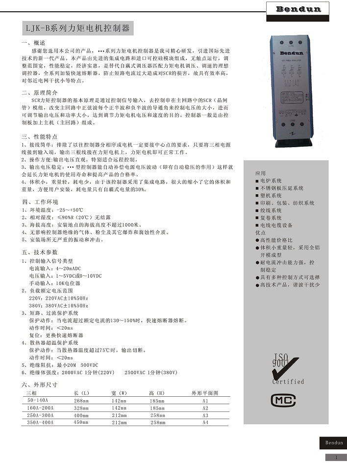LJK-3PAC380V100A-B系列LJK力矩电机控制器