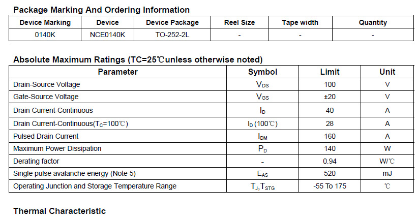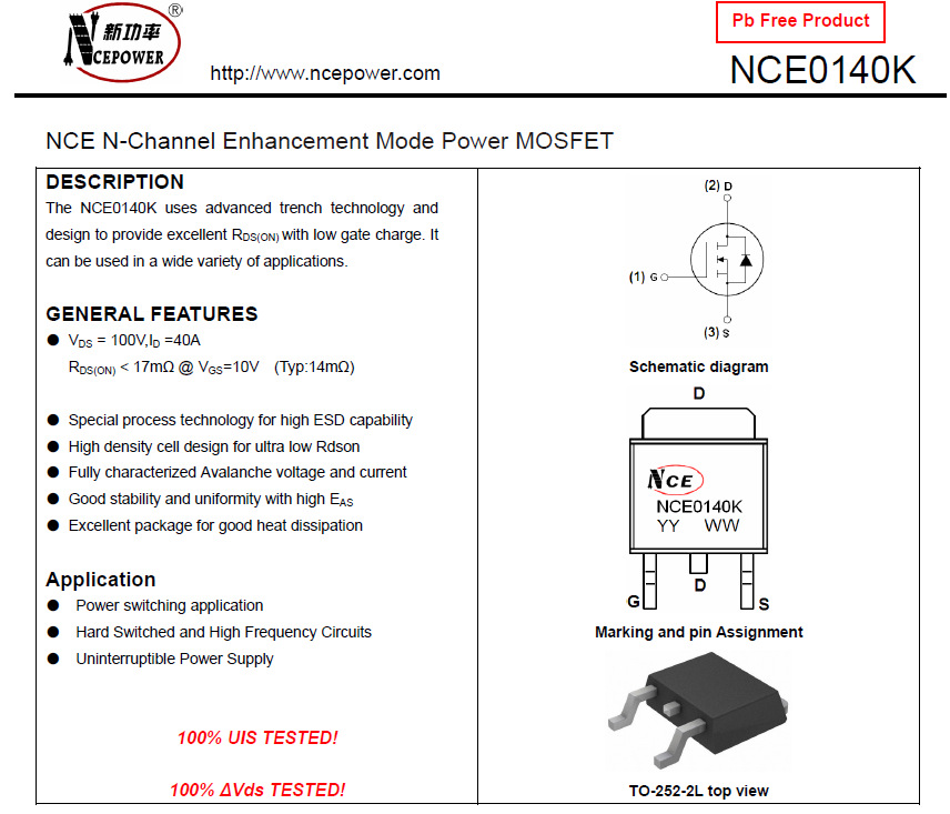 NCE01H10中高压大电流的典型N沟道MOS 应用领域广。