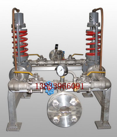 双路气体减压装置,由手动气体减压阀、安全阀、手动球阀、过滤器、旁路手动阀、压力表等组成一套完善的减压调压系统。