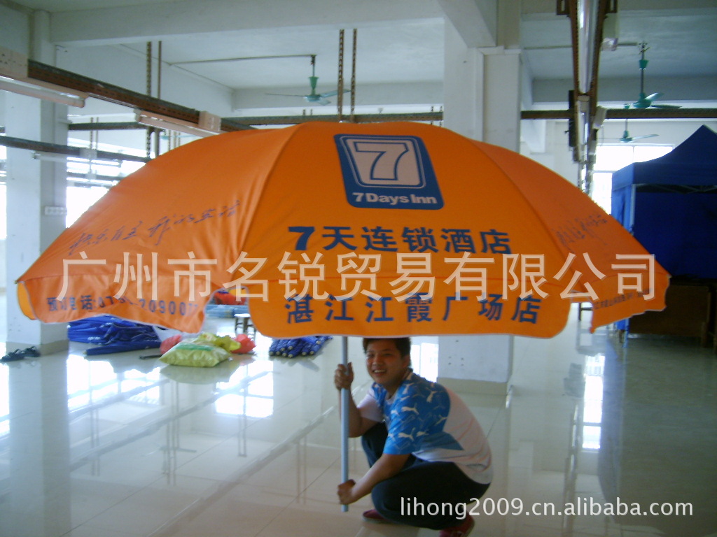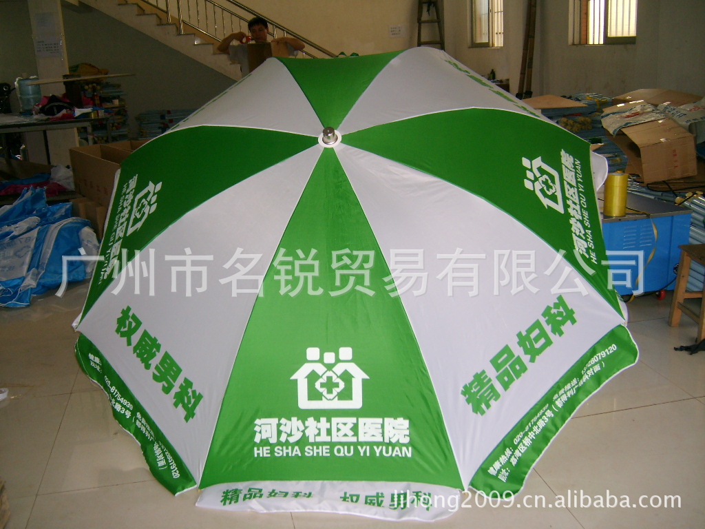 名称:广告太阳伞尺寸:48寸*8骨防风骨(122CM*8K)类型:手开伞布:牛津布(常用:210D加密或420D的布料)骨架材质:铁架喷白漆(可订做色漆)中棒:上管29MM,下管32MM
