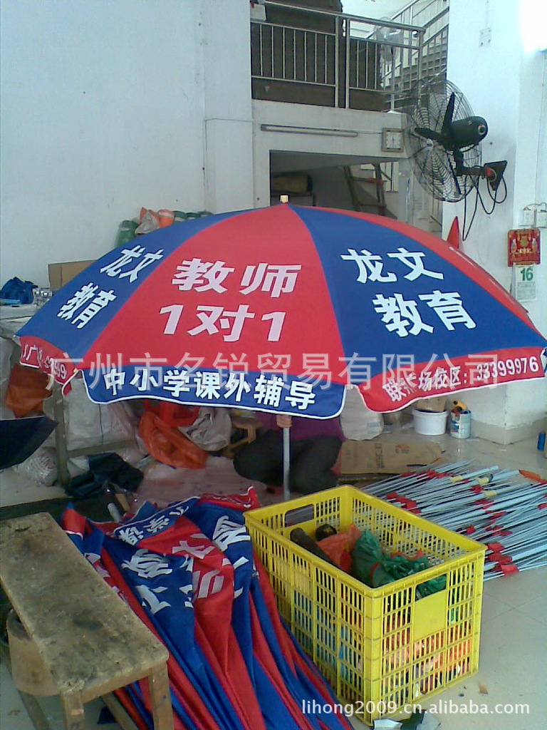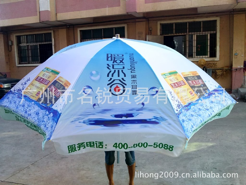 名称:广告太阳伞尺寸:48寸*8骨防风骨(122CM*8K)类型:手开伞布:牛津布(常用:210D加密或420D的布料)骨架材质:铁架喷白漆(可订做色漆)中棒:上管29MM,下管32MM