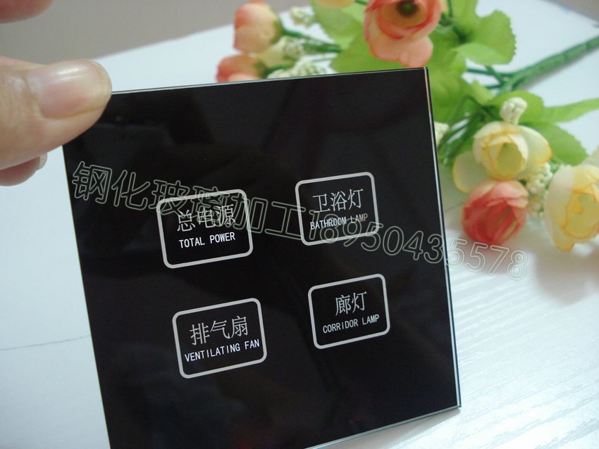 【产品名称】:酒店门牌号玻璃、酒店触摸开关玻璃、酒店门铃开关玻璃、酒店触摸墙壁开关钢化玻璃。
