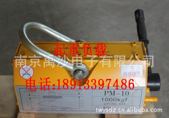 永磁吸盘(又称永磁吸吊器、永磁起重器)分为手动型永磁起重器和全自动永磁起重器两种,采用当代高性能 N40 磁性材料钕铁硼,使之体积更小、自重更轻、吸持力更强,独特磁路设计,剩磁几乎为零。安全系数高,最大拉脱力是额定起重力的 2.8-4 倍。手动型永磁起重器手柄开关附有安全钮,可单手操作,方便安全。起重底面“ V ”型槽设计。全自动永磁起重器无需人力扳动手柄,靠电动吊车下钩的升降控制吸附,可起吊相对应的圆钢、钢板,不用电,使用安全,广泛用于钢材的起重搬运,平整的机械零部件及各种模具的安装和搬运。 适用于造船、工程机械、汽车等行业常温钢板起吊、搬运等作业的起重工具。 主要用于吊装过程中与被吊装工件的连接,(比如:和环链电动葫芦,钢丝绳电动葫芦等配套)用于移动铁板、块和圆柱形导磁材料的工作。操作方便、安全可靠、结果紧凑轻巧。广泛应用在工厂、码头、仓库、交通运输行业中。改进装卸搬运作业的工作条件,提高劳动效率。
