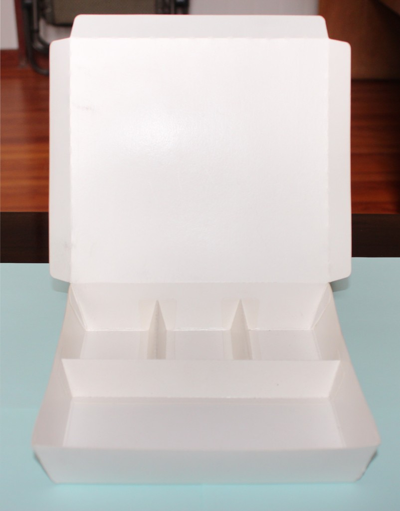 本产品原材料采用A级淋膜纸生产,产品外观美观,打包饭菜、甜点、油炸食品等,汤油不渗漏外带不烫手,是国家大力推广的节能环保产品。