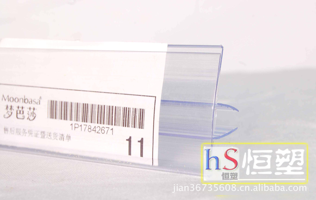 我公司【广州恒塑】主要产品有货架挂钩牌、粘贴式标价条、卡式标价条、玻璃层板标价条、大品牌展柜标价条、软硬共挤标签夹、超市海报秆、画轴、塑料挂钩、pop通道卡夹、X展架、展示用品、货架耗材等。公司生产的通用产品价格合理,品种多。(也可以根据客户的要求来图,来样,开模定做)产品颜色鲜艳,透明度光亮而不发黄,有韧性,不易破碎,经久耐用等特点。
