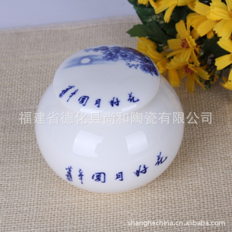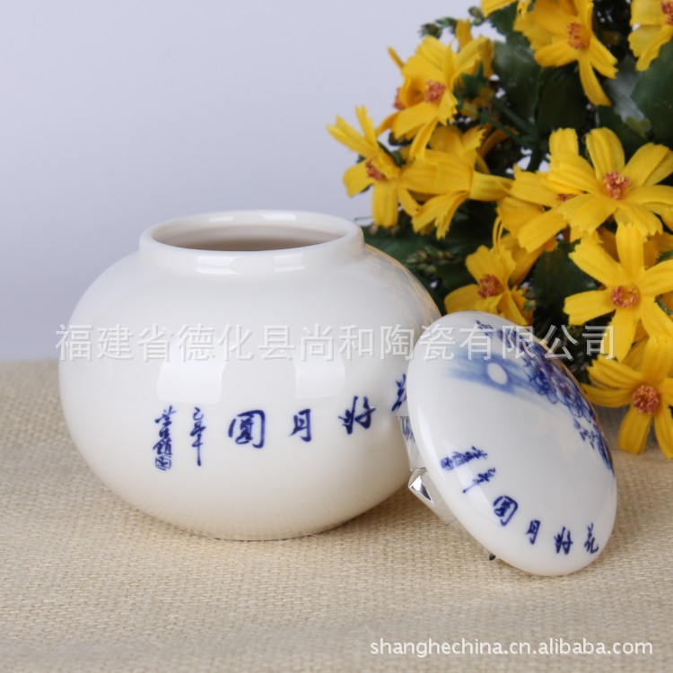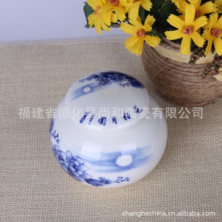 尚和道厂家直销高档青花陶瓷花好月圆圆头茶叶罐SH-85005