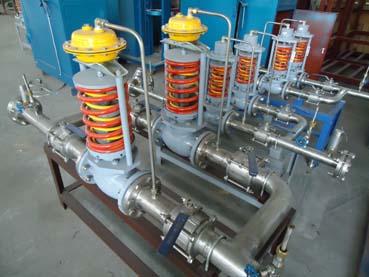 调压阀组广泛用于管道用气的用户。它的作用是将气化器出口以后的气体经调压阀组(稳、减调压装置)使气体压力成为所需数值并使压力稳定后,输送到用气现场
