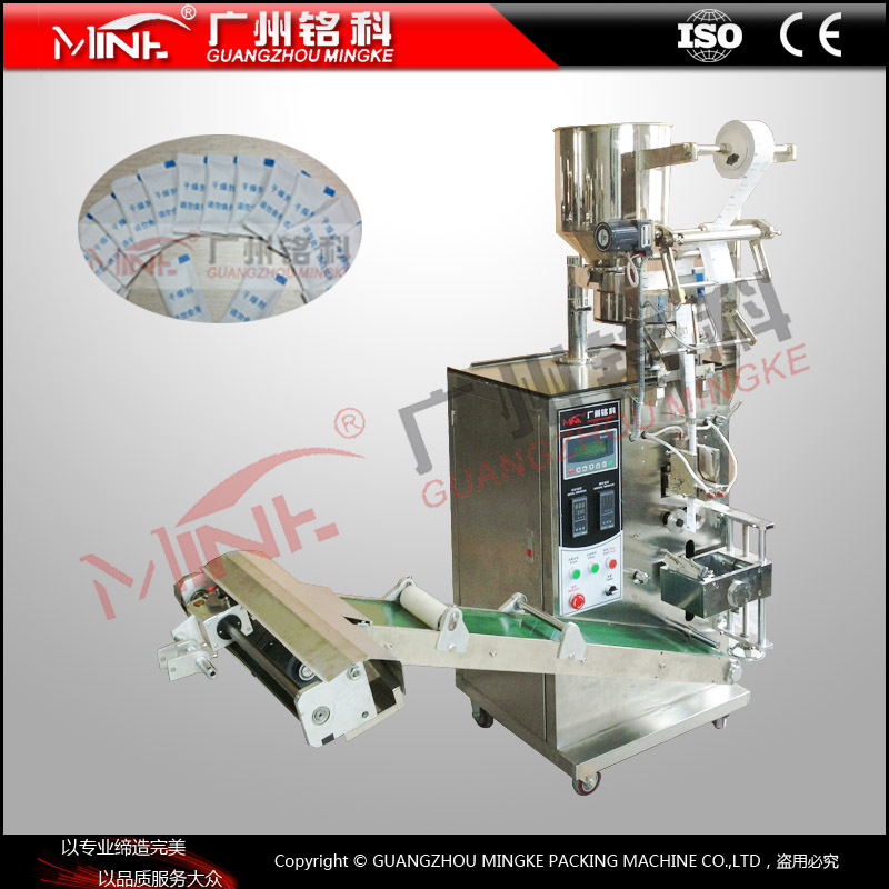 颗粒包装机适用于制药、食品、日化、农药、塑料制品及特殊行业等产品中的松散型、无粘性颗粒状物料的全自动包装。如:种子、中药、饲料、冲剂、小丸、味精、盐、白糖、汤料、麦片、茶叶、活性炭、洗衣粉、干燥剂等物料的包装
