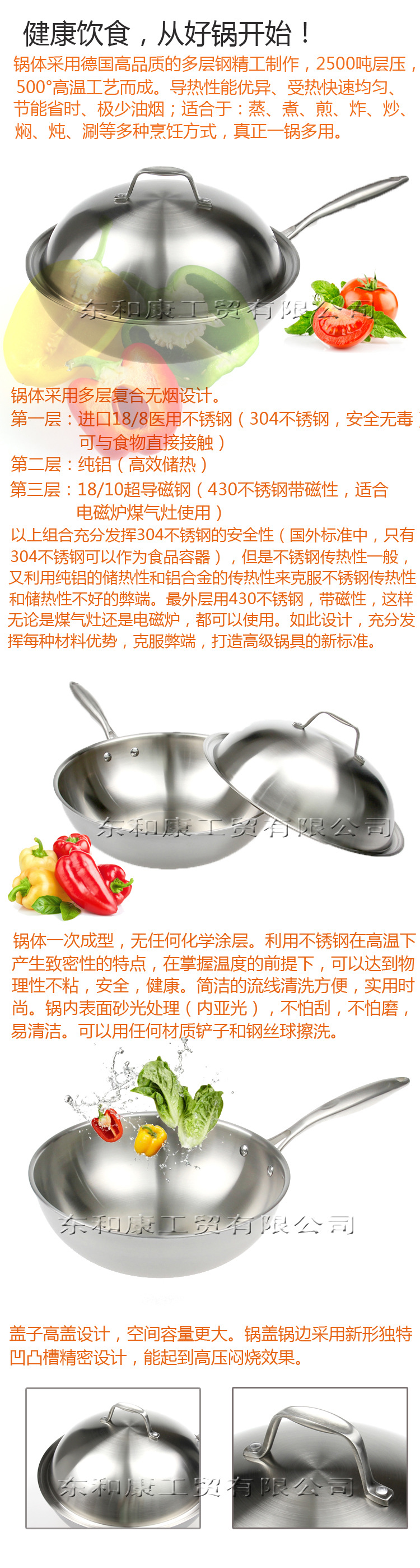 厂家直销 三层钢不锈钢锅 2.5MM厚度 礼盒装炒锅 M型锅盖