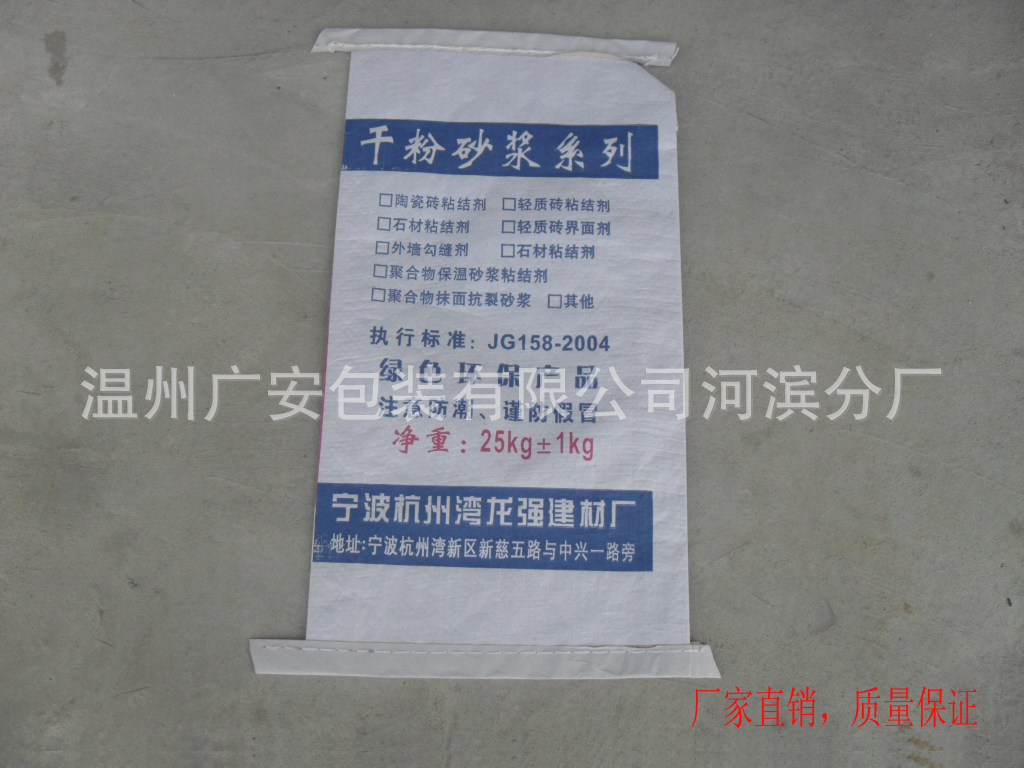 纸塑复合编织袋,具有强度高,防水性好,外观漂亮的特点。是目前最流行包装材料之一,被广泛应用在塑胶原料、水泥、饲料、化工、肥料等行业。