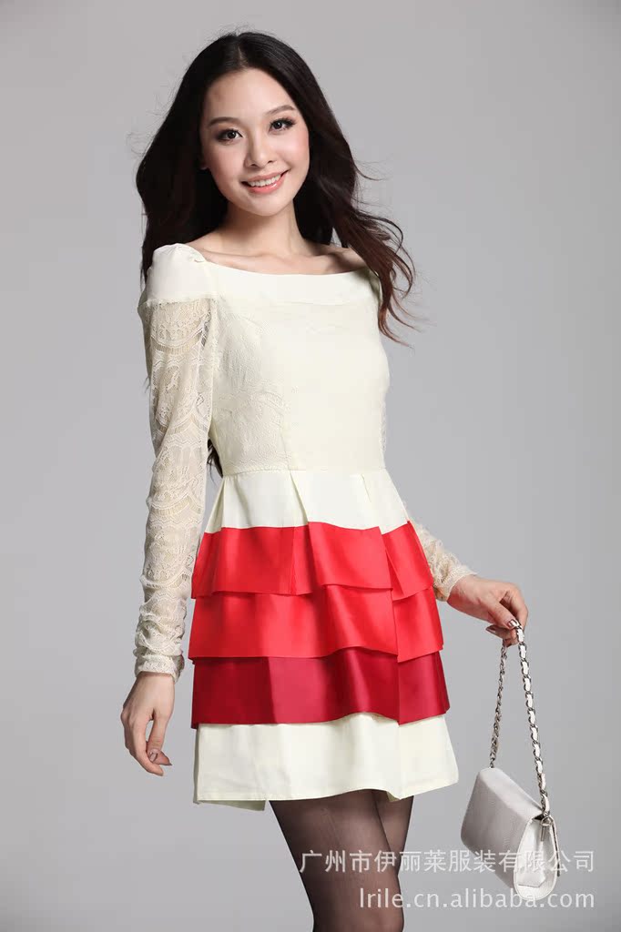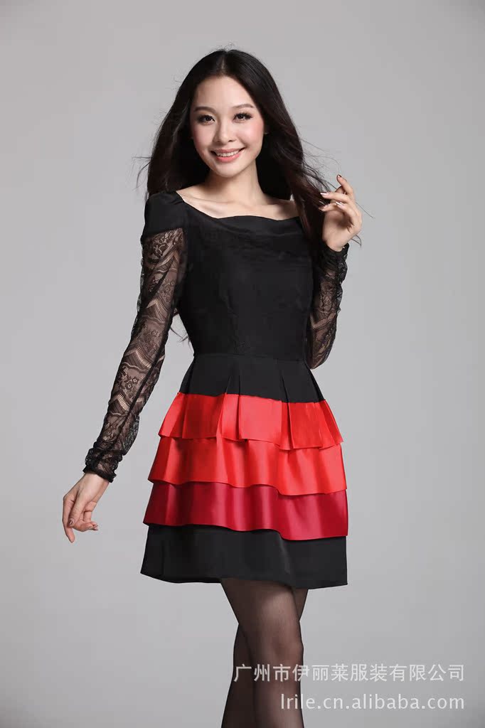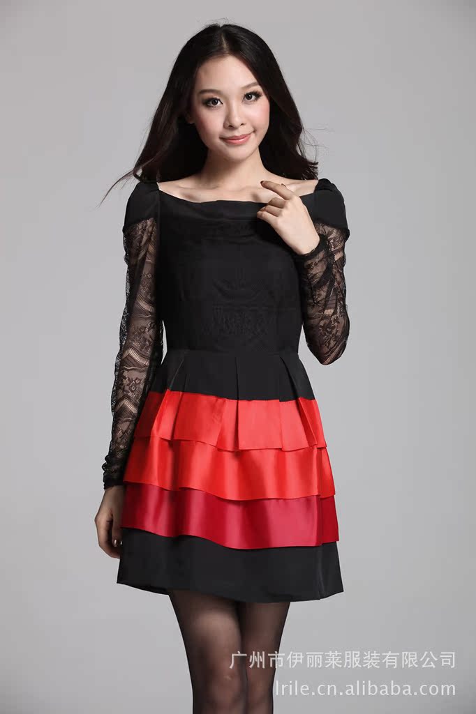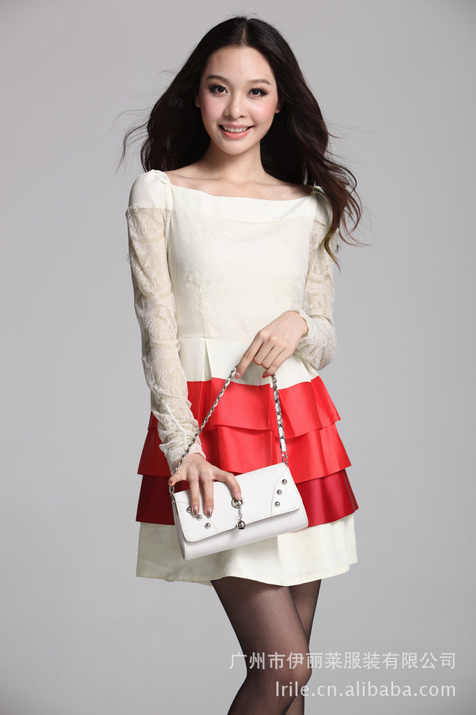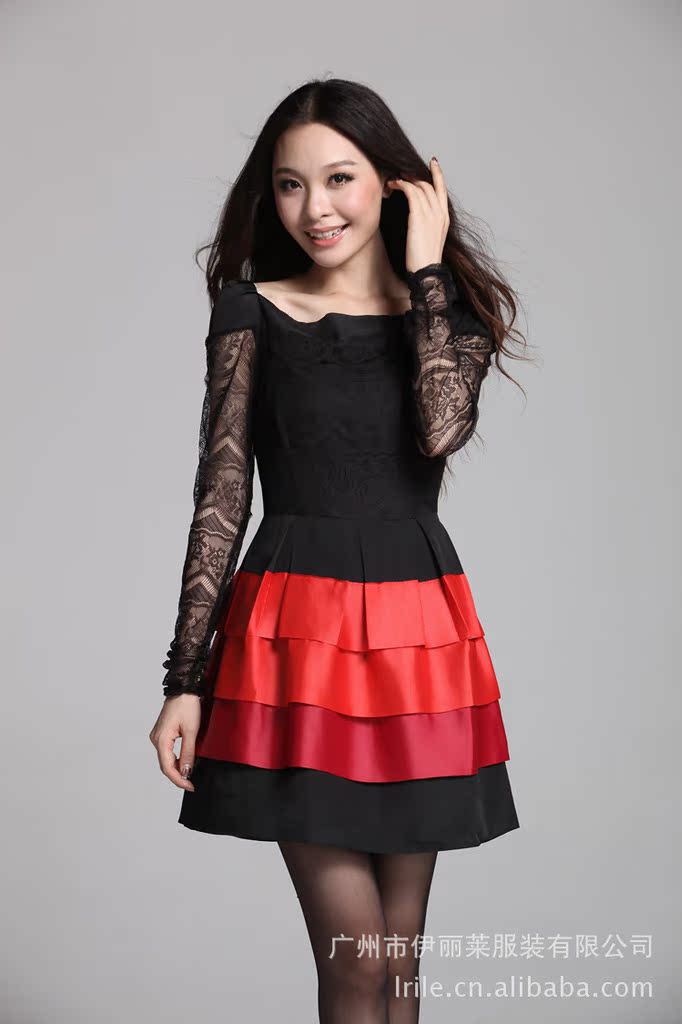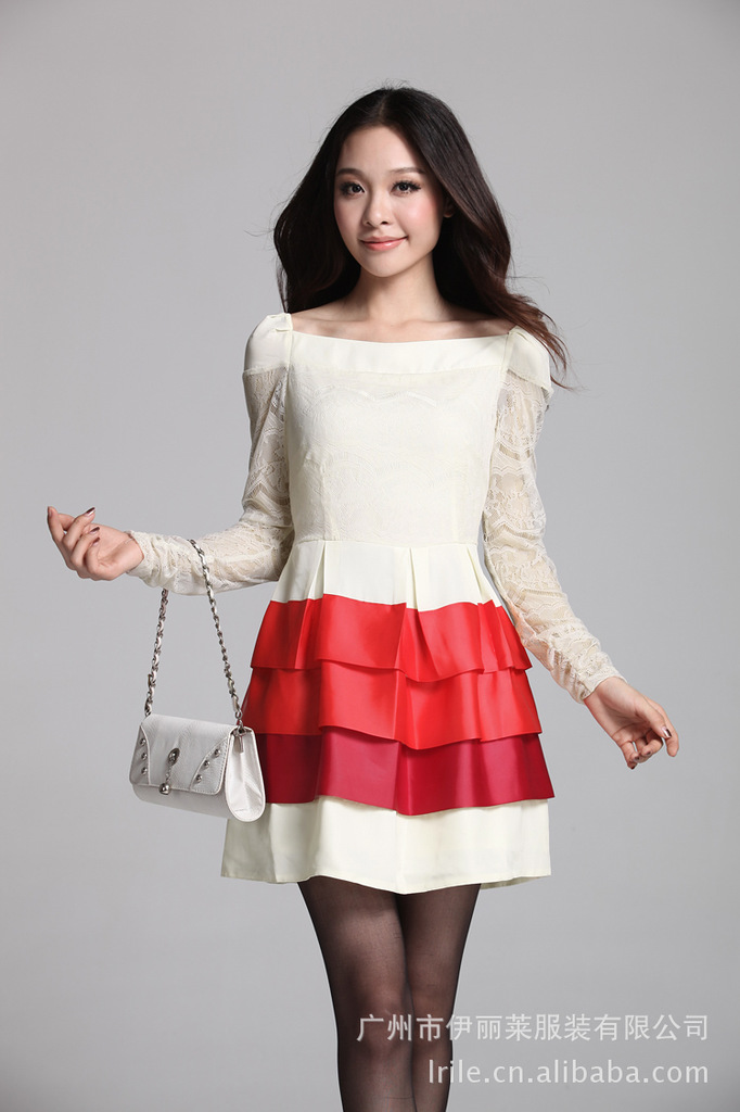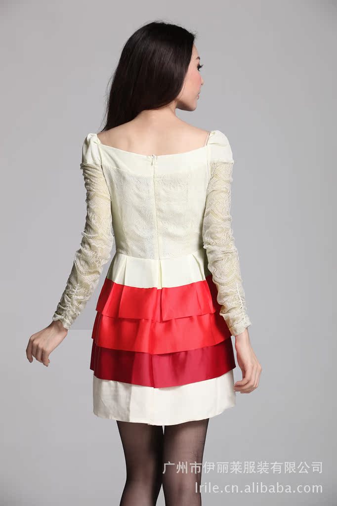 2012秋装连衣裙 韩版长袖蕾丝拼接蛋糕裙