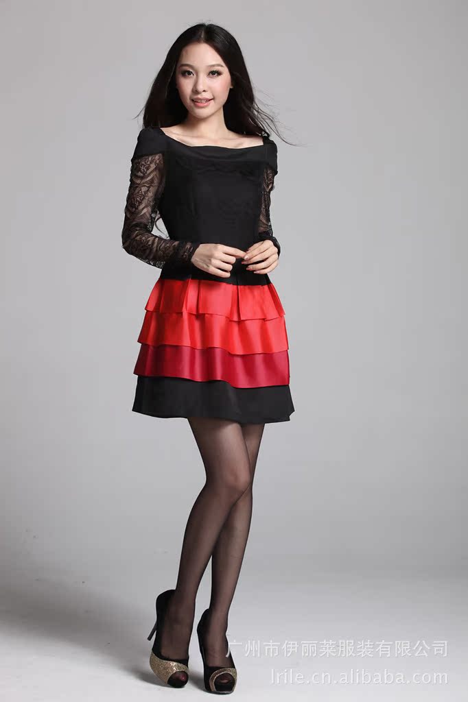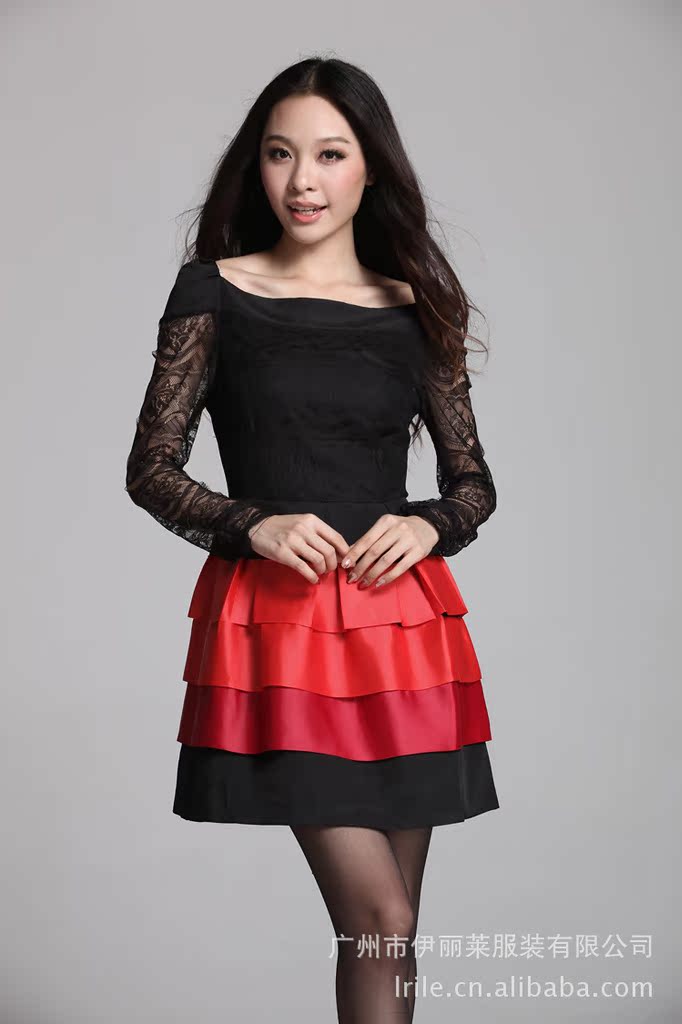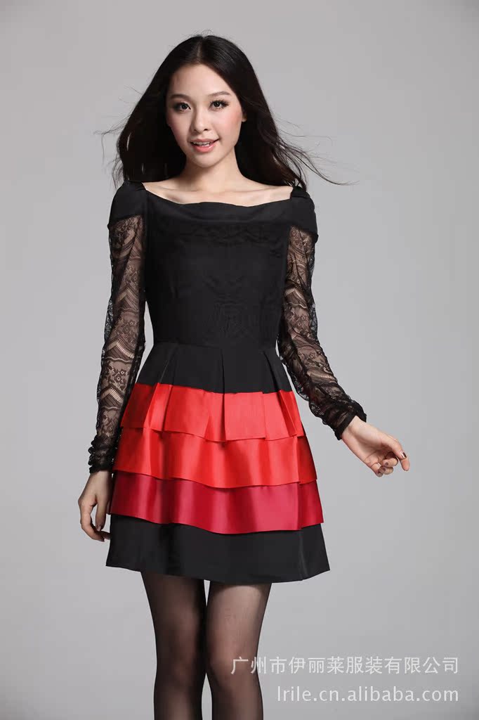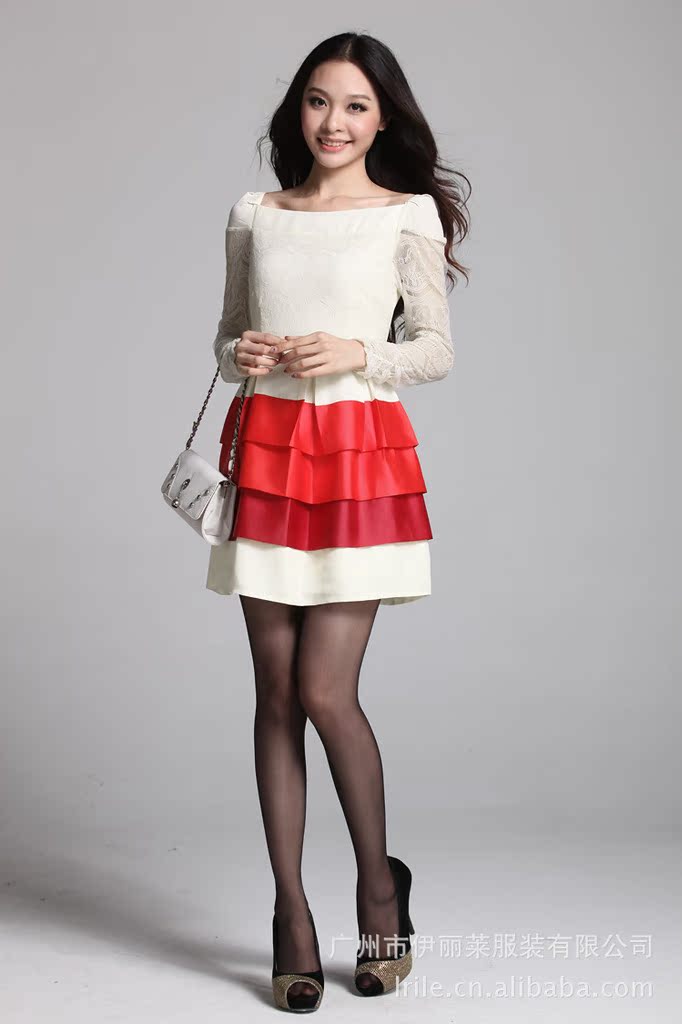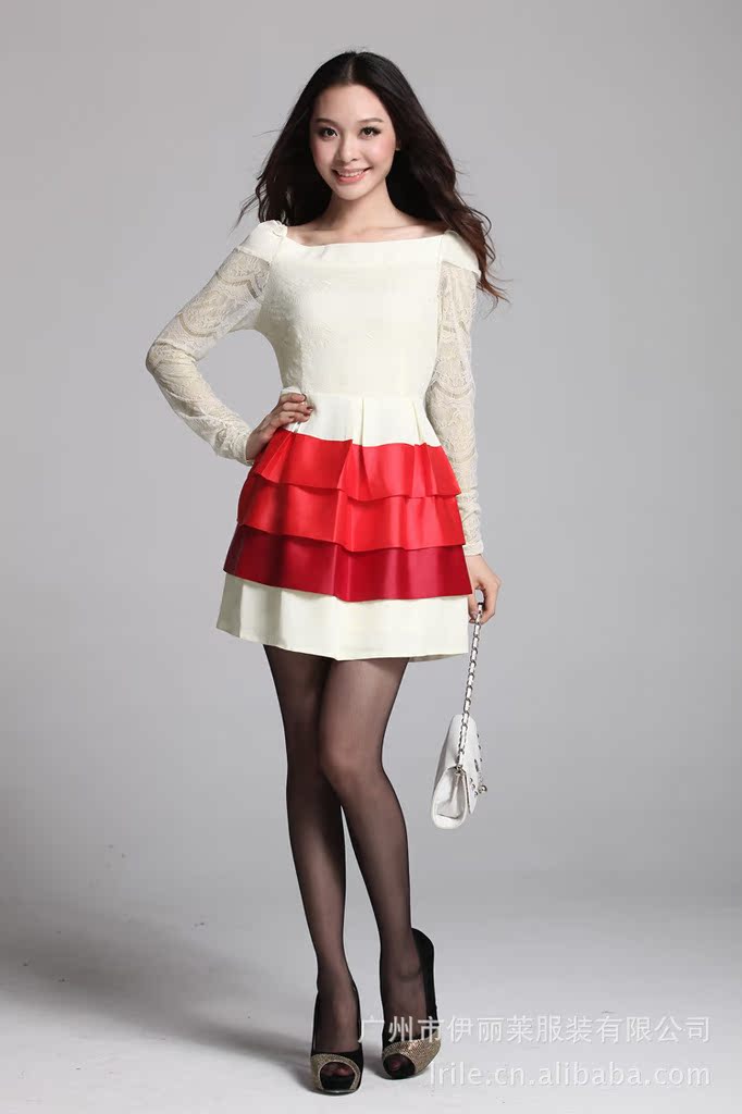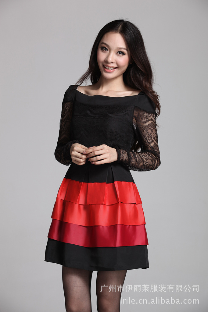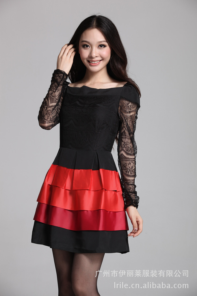 2012秋装连衣裙 韩版长袖蕾丝拼接蛋糕裙