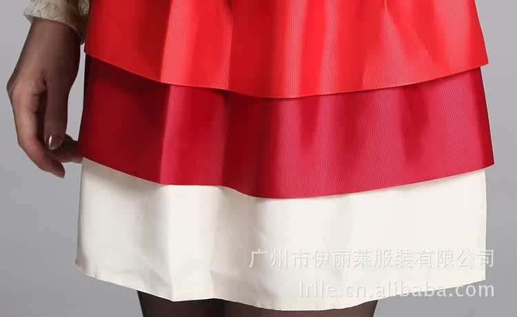 下摆拼接炫彩蛋糕裙摆