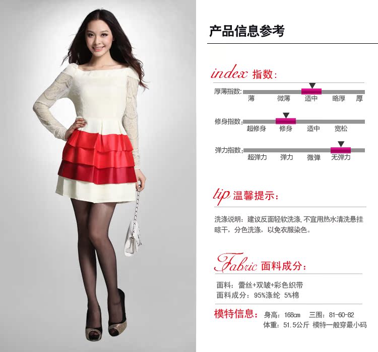 洗涤说明 | 手洗,悬挂晾干,分色洗涤,以免衣服染色;喷洒香水要注意远距离,以免留下黄斑。 |