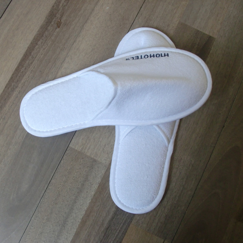 毛巾布拖鞋 品名: 酒店客房一次性毛巾布拖鞋 用途: 国内外各大中小型酒店宾馆客户内使用 面料 :毛巾布 组成部分 鞋帮:外帮和内帮;鞋底 风格: 包头/开口 工艺 :一把包/镶底 常规组成:外帮毛巾布复合2-5mm海绵/内帮毛巾布复合2-5mm海绵 内帮可换成低克重的毛巾布或拉毛布复合海绵,或换成无纺丝以降低成本。 鞋底:2-6mmEVA+纸板+毛巾布复合的海绵,有时候根据客人的需要可增加海绵小后跟 LOGO: 普通印刷,胶印和绣花 尺寸大小:根据客户要求。(常规的有:27X10.5cm, 28X11cm, 29X11cm. 30X12cm.) |