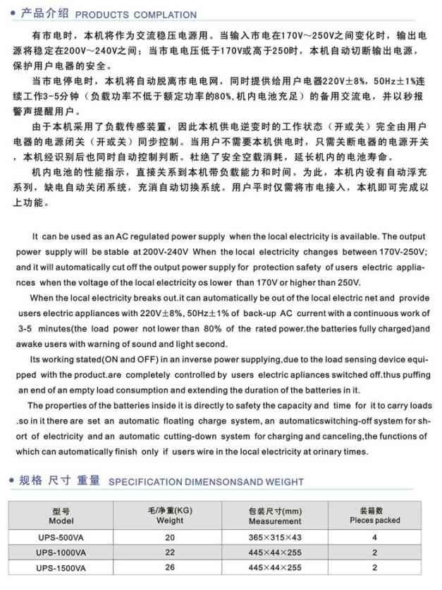 (6) 无人值守功能,电池欠压自动关机保护,市电恢复正常自动开机。