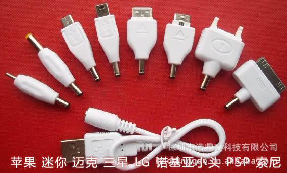 8、超值共享,无须携带各种充电器,随机附赠的转接头能为各品牌手机充电。