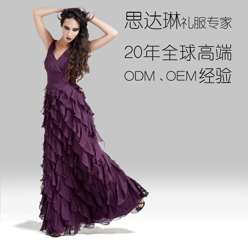供应外贸晚礼服 紫罗兰绚丽高档演出晚礼服小礼服宴会服定制 批发